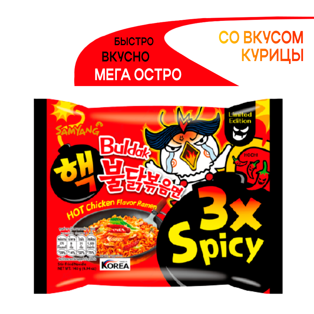 Это одно из самых жгучих блюд в линейке Samyang Buldak, в 3 раза острее, чем классическая Buldak Original! Лапша пропитана мощным соусом из экстракта красного перца чили, который буквально обжигает вкусовые рецепторы. Этот продукт предназначен для настоящих любителей экстремальной остроты и тех, кто хочет испытать свои силы в легендарном “Spicy Challenge”!