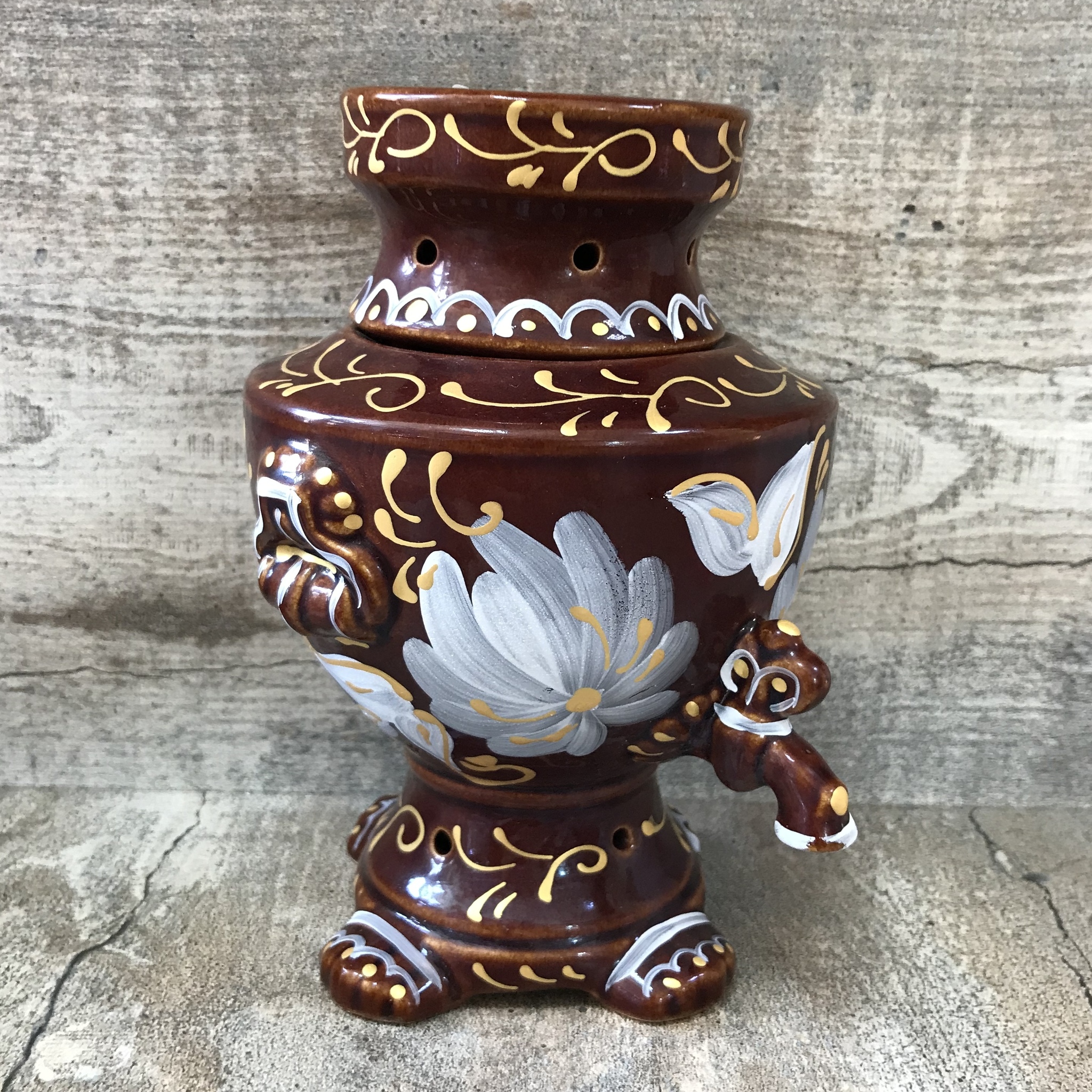 Аромалампа Самовар цвет коричневый роспись цветы светлые керамика 16,5 см