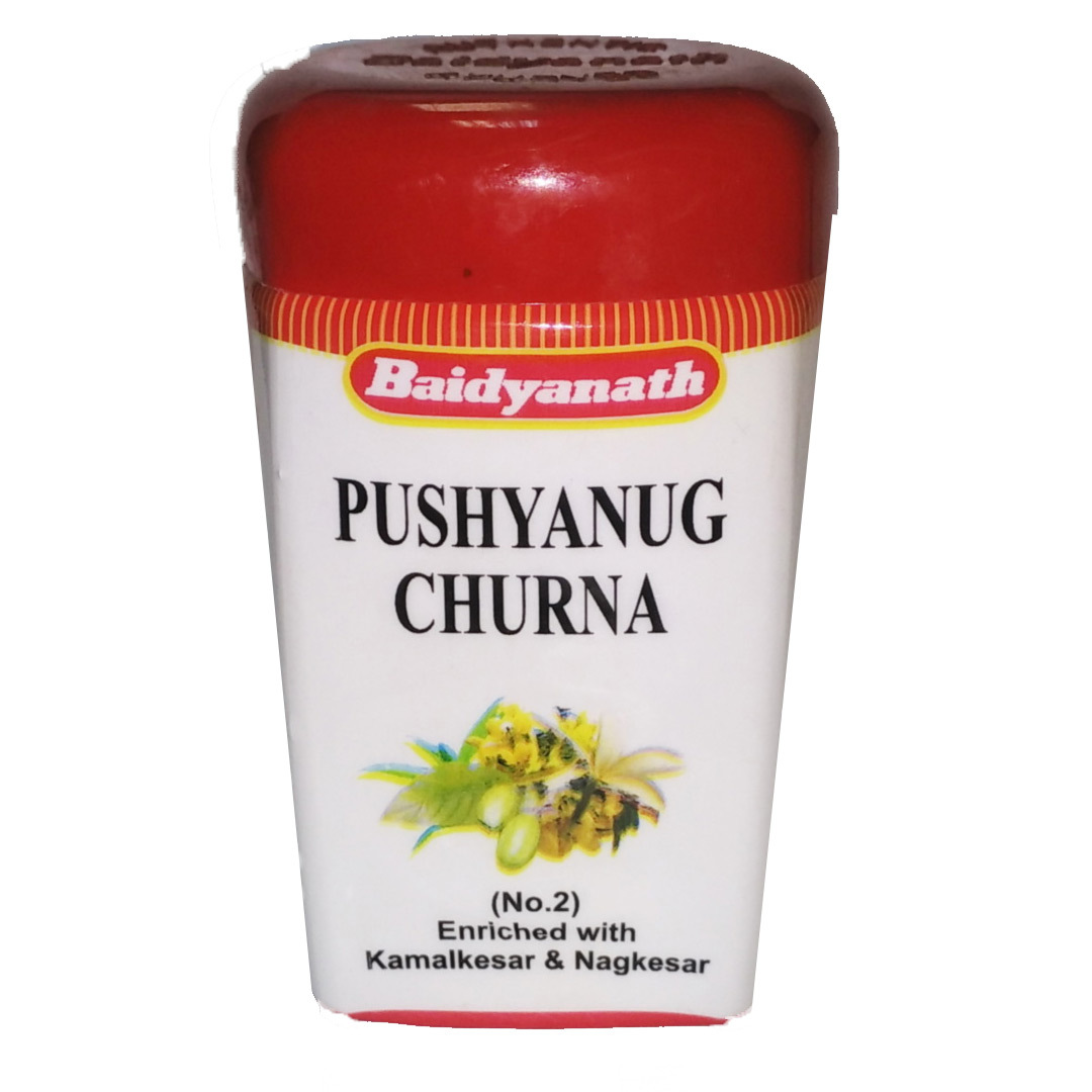 ПУШЬЯНУГ ЧУРНА (Pushyanug Churna, Baidyanath) – известный аюрведический препарат в виде порошка используется при гинекологических заболеваниях. Богатый растительный состав, позволяет справиться с большинством женских заболеваний, способствует омоложению и нормальному функционированию женской репродуктивной системы. Пушьянуг Чурну рекомендуют использовать при обильных менструациях и маточном кровотечении. Препарат используется при борьбе с влагалищными инфекциями, при белых и водянистых выделениях, аменореи (нарушение менструального цикла), дисменореи (при болезненных месячных). Так же применяется при бесплодии, эндометриозе, кисте яичников, фиброзных опухолях в матке, геморрое. Устраняет проблемы нарушения женских гормонов. Уменьшает боли. Поддерживает в гармоничном состояние тонус матки. Выравнивает все 3 Доши.
