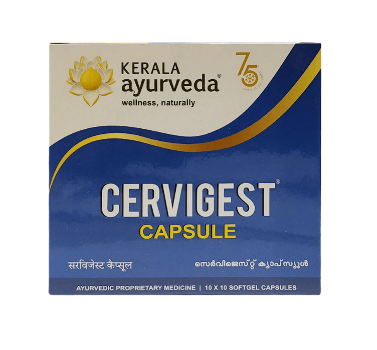 Cervigest от бренда Kerala Ayurveda – многокомпонентное высокоэффективное аюрведическое средство, предназначенное для снятия отечности, увеличения силы и выносливости, выведения токсинов из организма. Капсулы помогают в лечении заболеваний опорно-двигательного аппарата, неврологических расстройствах, связанных с шеей, головой, плечами, руками и позвоночником. Формула уникальная, позволяет поддерживать силу паравертебральных мышц шеи, избавиться от мышечных спазмов, воспалений, дегенеративных изменений в межпозвоночных дисках, оздоровить кости, хрящи и связки.