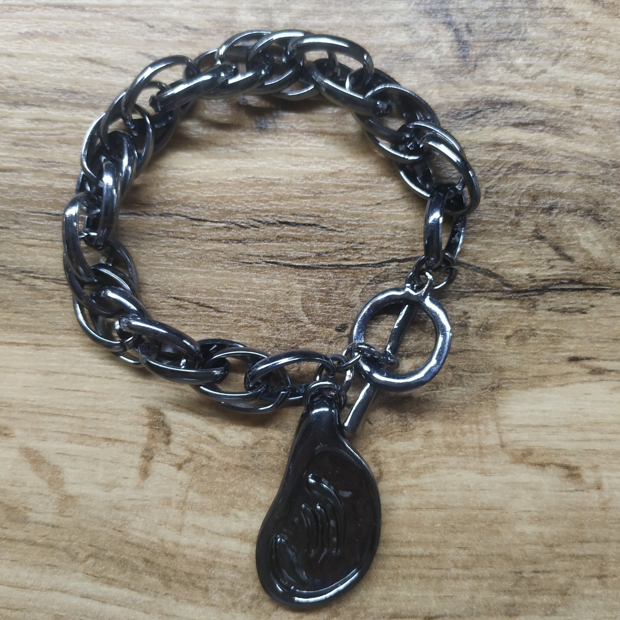 Браслет-тоггл "Цепи" плетение двойная кордовая с подвеской металл графитовый