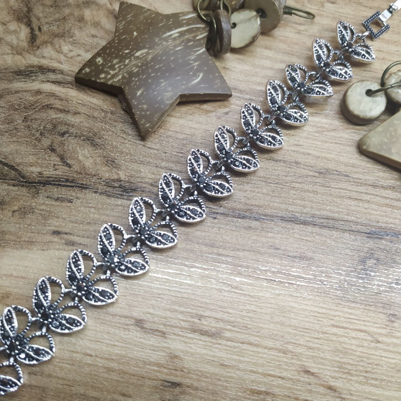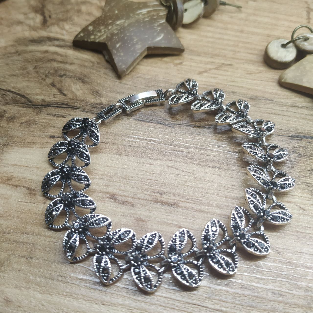 Браслет Vogue Бабочки 16 мм стразы графитовые металл серебристый на красном бархате
