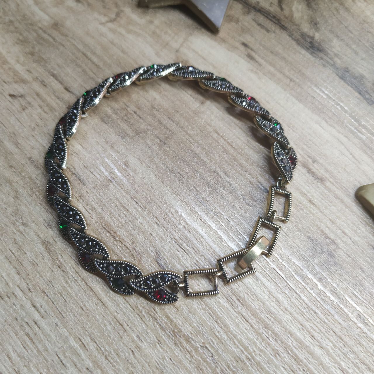 Браслет Vogue Ландыш стразы графитовые красные зеленые металл золотистый на красном бархате