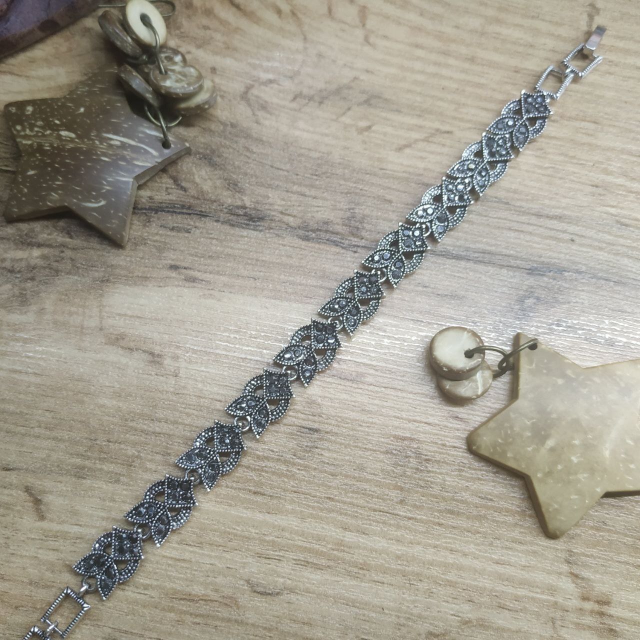 Браслет Vogue Треугольник с листочками стразы графитовые металл серебристый на красном бархате