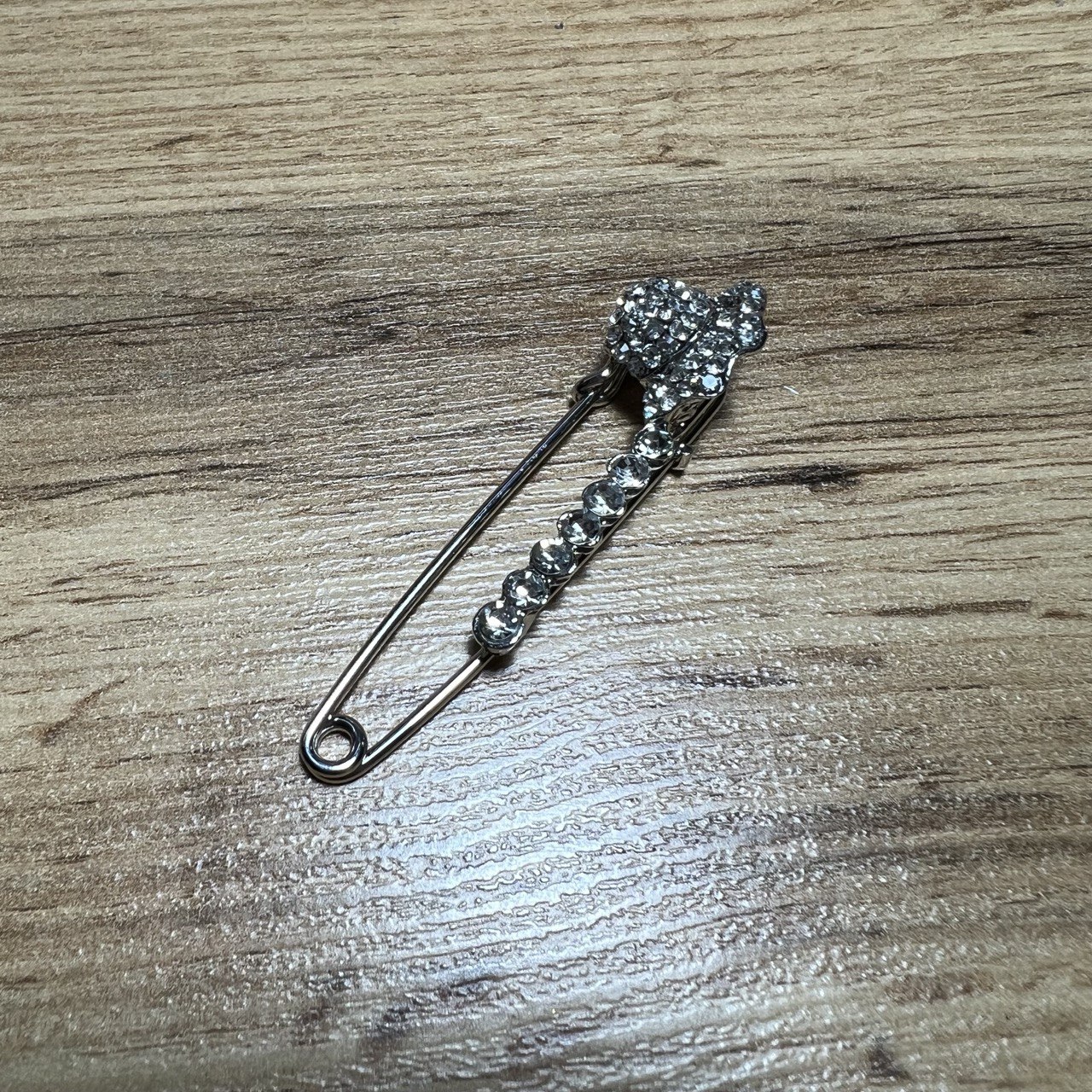 Брошь-булавка Шляпка 7 кристаллов стразы металл серебристый 6 см