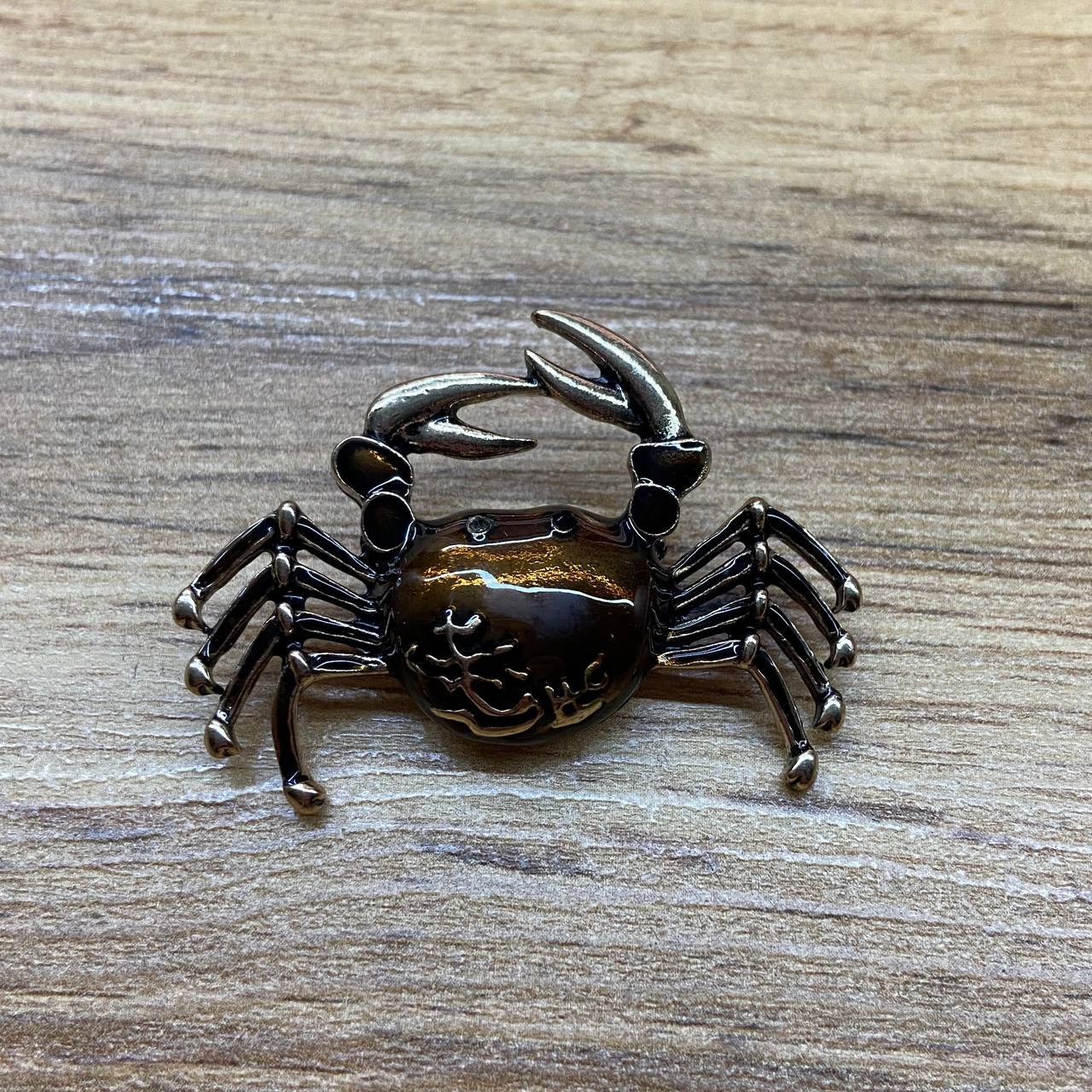 Брошь Краб эмаль коричневая металл золотистый