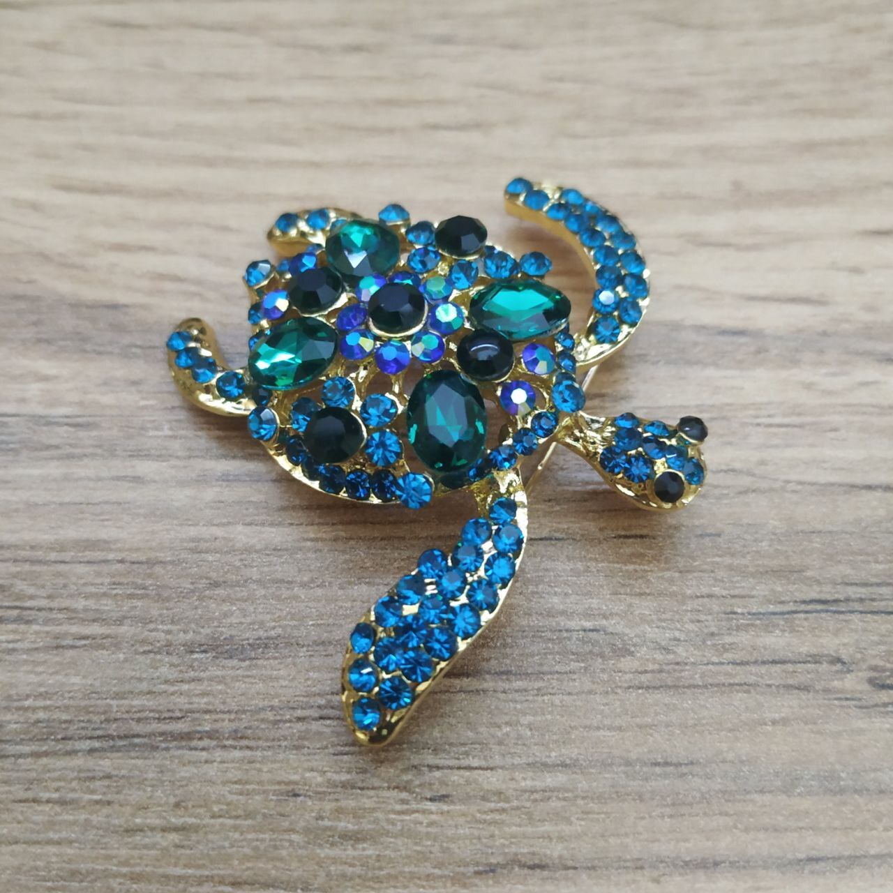 Брошь-кулон Черепашка морская со стразами и камнями металл золотистый