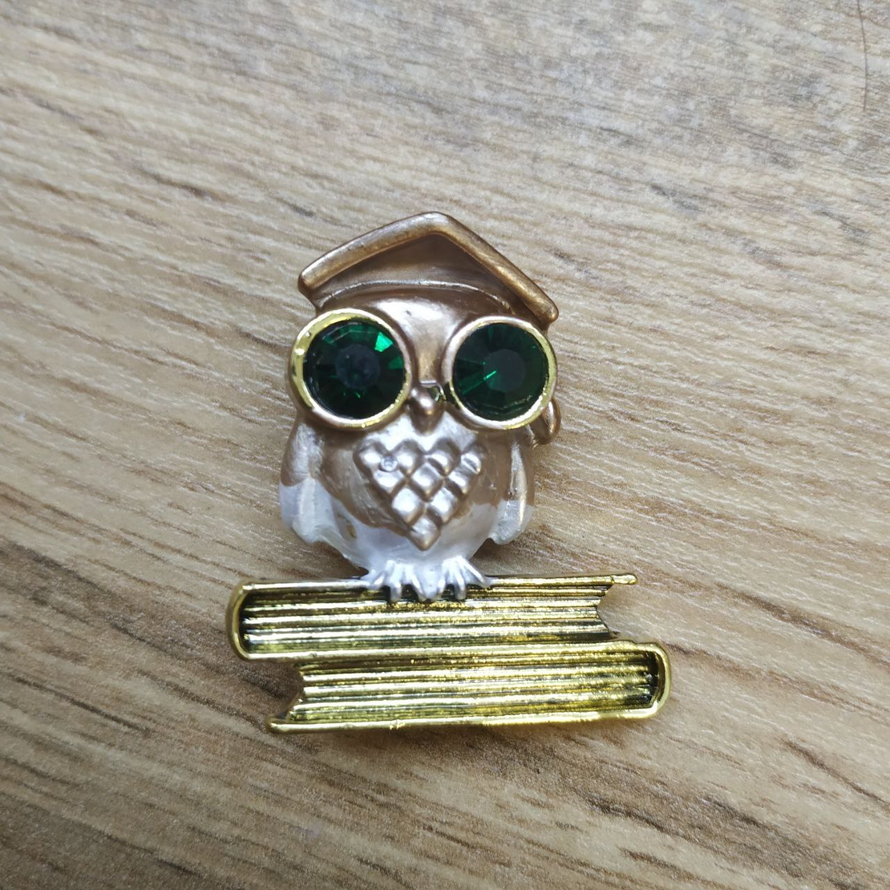 Брошь Ученая сова на книжках цвет коричневый эмаль цветная металл золотистый черненый