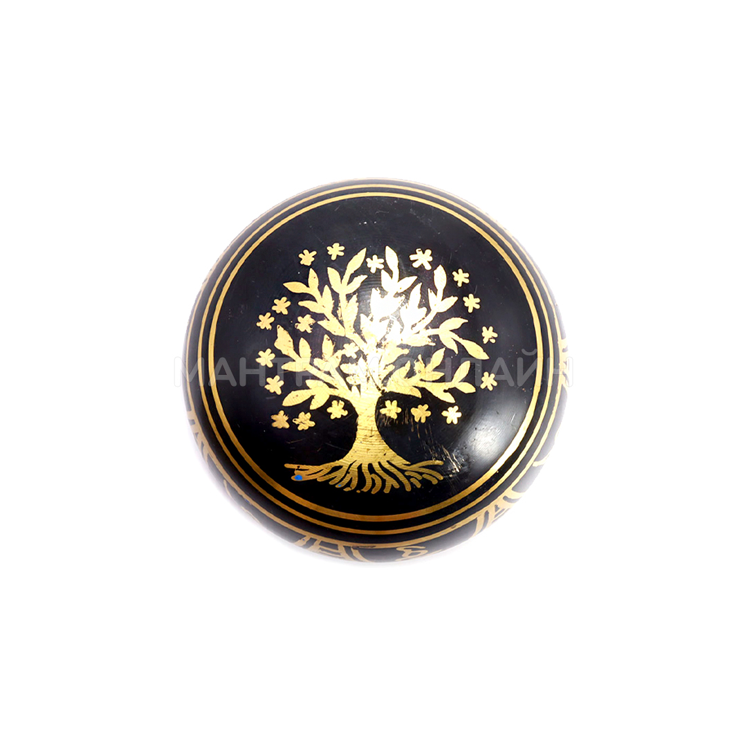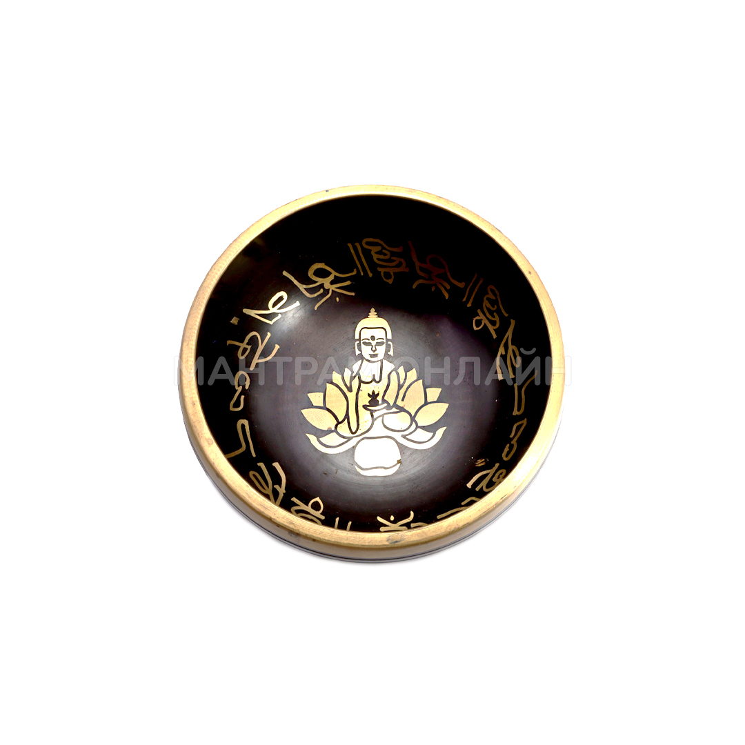 Поющая чаша "Будда на лотосе" изготовлена из сплава пяти металлов и украшена золотыми символами. Поющие чаши — традиционные восточные музыкальные инструменты, издавна использовавшиеся в религиозных обрядах. Сегодня их применяют: