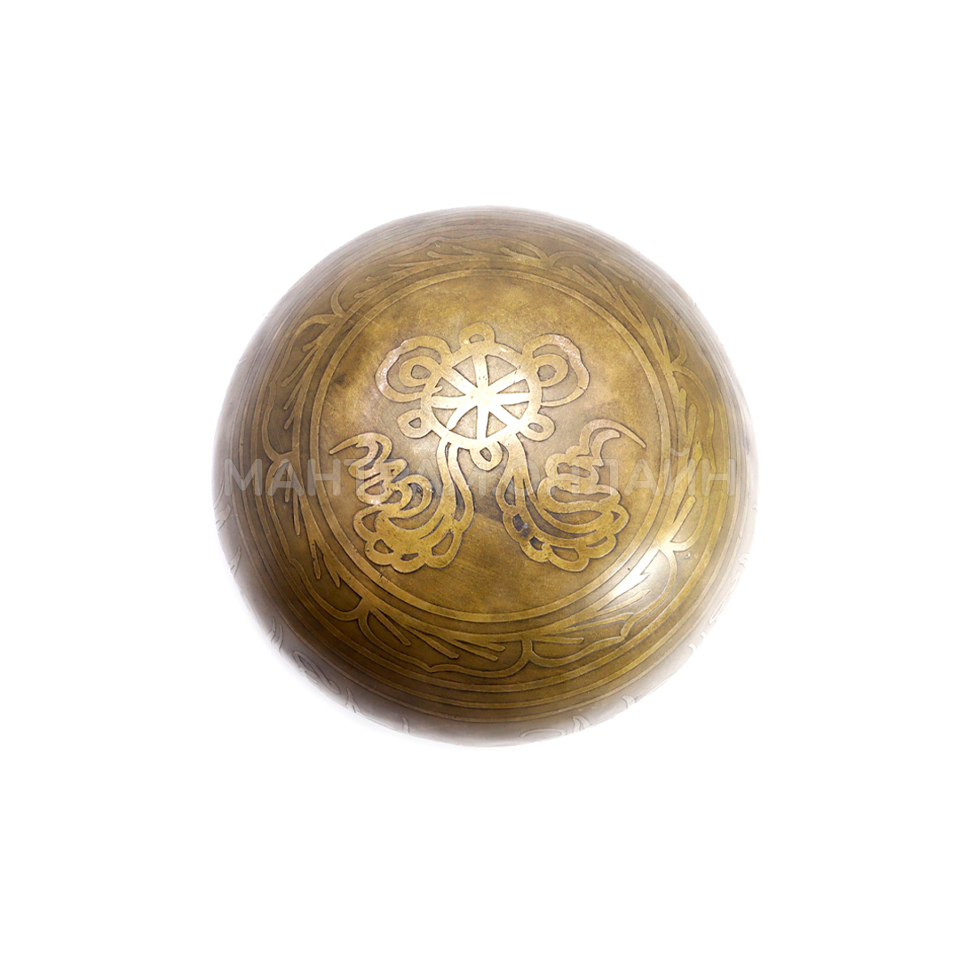 Поющая чаша ручной ковки большого размера, гладкая, с орнаментом из благоприятных мантр и символом Лакшми изготовлена из уникального сплава 9 металлов. Кованые поющие чаши - удивительный музыкальный инструмент, один из древнейших в мире, дошедший до наших дней. Поющая чаша – это качественный инструмент для различного рода духовных практик. Он предназначен для работы с сознанием и телом человека на всех его уровнях. Кованая чаша ручной работы, высокого качества. Небольшие сколы, царапины, вмятины на корпусе чаши не являются браком.