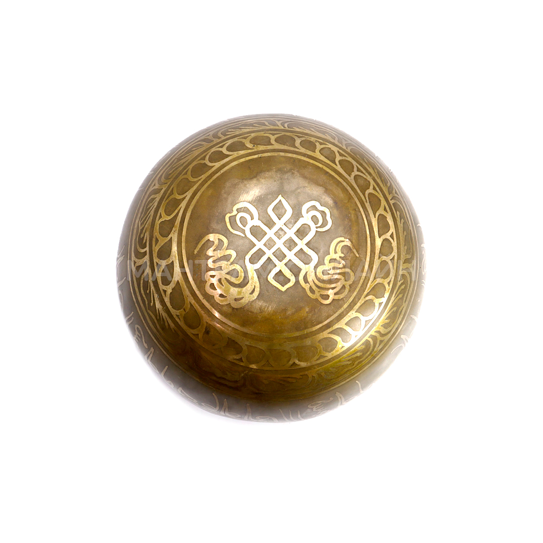 Поющая чаша ручной ковки большого размера, гладкая, с орнаментом из благоприятных мантр и символом Шри Янтра изготовлена из уникального сплава 9 металлов. Кованые поющие чаши - удивительный музыкальный инструмент, один из древнейших в мире, дошедший до наших дней. Поющая чаша – это качественный инструмент для различного рода духовных практик. Он предназначен для работы с сознанием и телом человека на всех его уровнях. Кованая чаша ручной работы, высокого качества. Небольшие сколы, царапины, вмятины на корпусе чаши не являются браком.