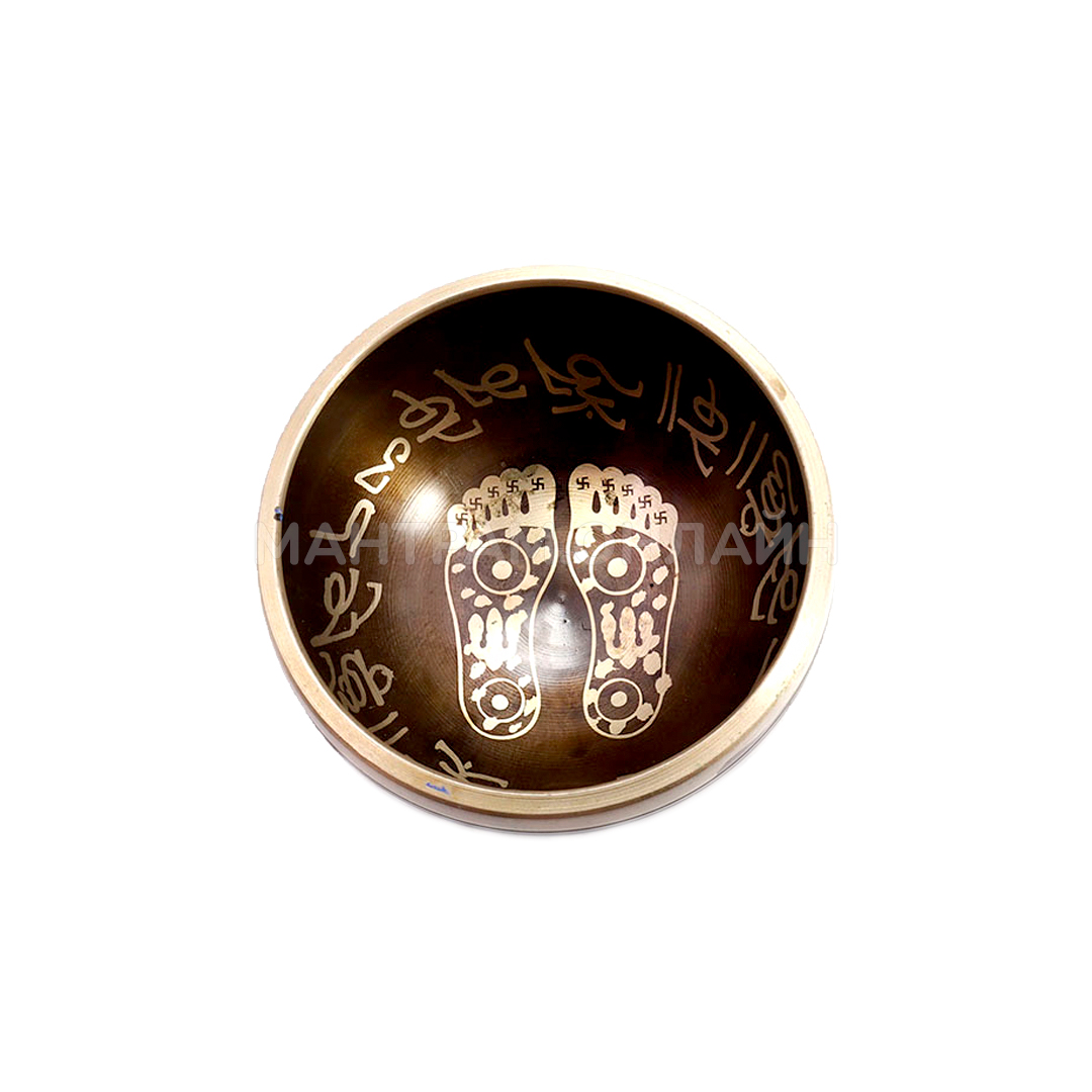 Поющая чаша "Стопы" изготовлена из сплава пяти металлов и украшена золотыми символами. Поющие чаши — традиционные восточные музыкальные инструменты, издавна использовавшиеся в религиозных обрядах. Сегодня их применяют: