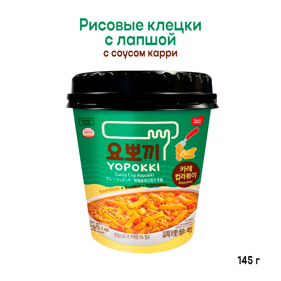 Рапокки - это одна из самых популярных вариаций корейского блюда. Содержит рисовые клецки и корейскую лапшу. Рисовые клецки отлично сочетаются с мягкой пшеничной лапшой и ароматным жгучим соусом карри. Рапокки с соусом карри Yopokki понравится ценителям азиатской кухни и позволит с удовольствием пообедать в офисе, дома или в поездке.