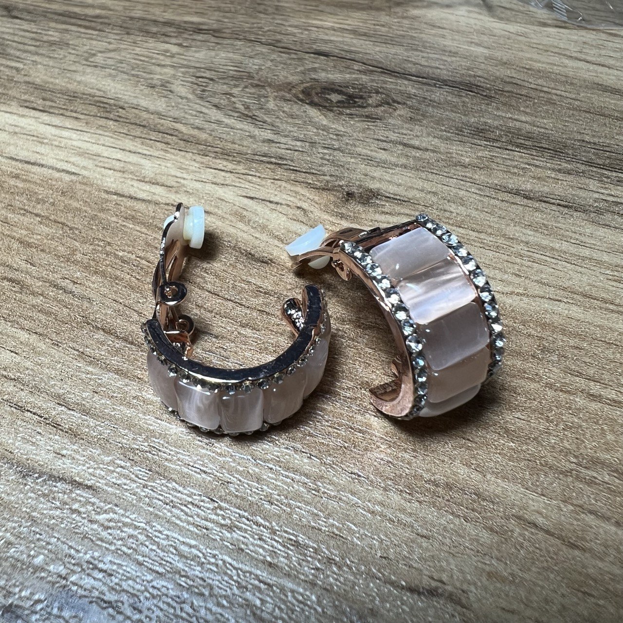 Клипсы Кошачий глаз 6 прямоугольников 11x22 мм стразы металл цвет медный