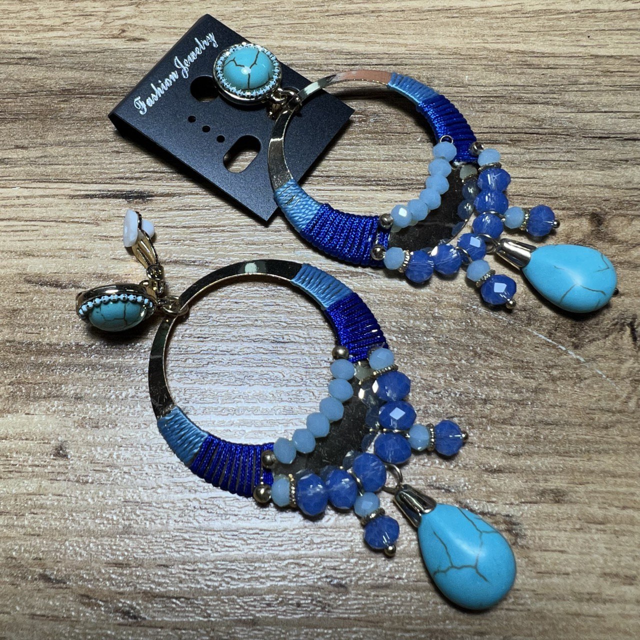 Клипсы Подвеска круг контур бусинки нити цвет голубой синий бирюзовый металл золотистый