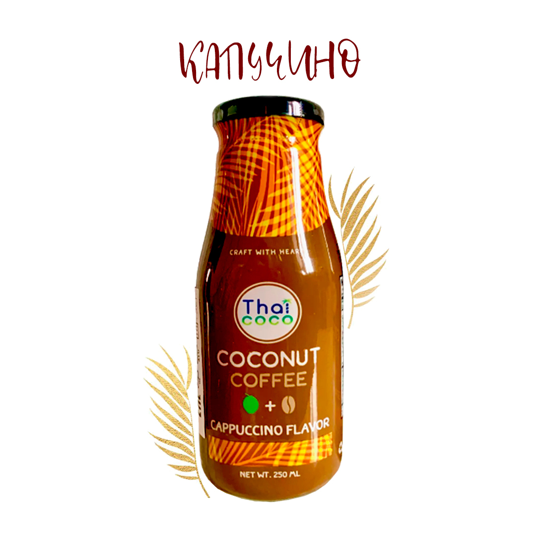 Вкусный и бодрящий кофейный напиток на натуральном кокосовом молоке. Создан из спелых кокосов, выращенных в провинции Ратчабури, и кофейных зерен высшего качества. Одна бутылка (250 мл) содержит всего 100 калорий, поэтому кофе отлично подойдет тем, кто заботится о фигуре и придерживается диет. Без сахара!