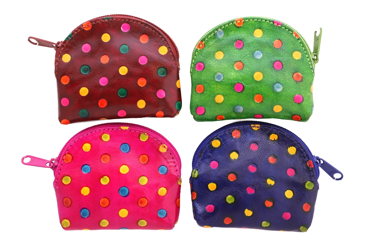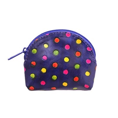 Кошелек под мелочь Горошки цвет синий, кожа, ручной принт 9x1,5x7 см
