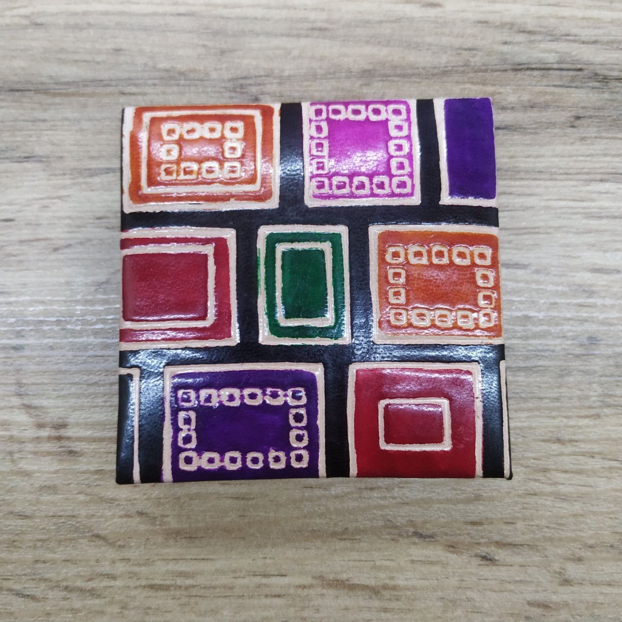 Кошелек под мелочь Цветные квадраты, цвет черный, кожа, ручной принт 7x7x1,5 см