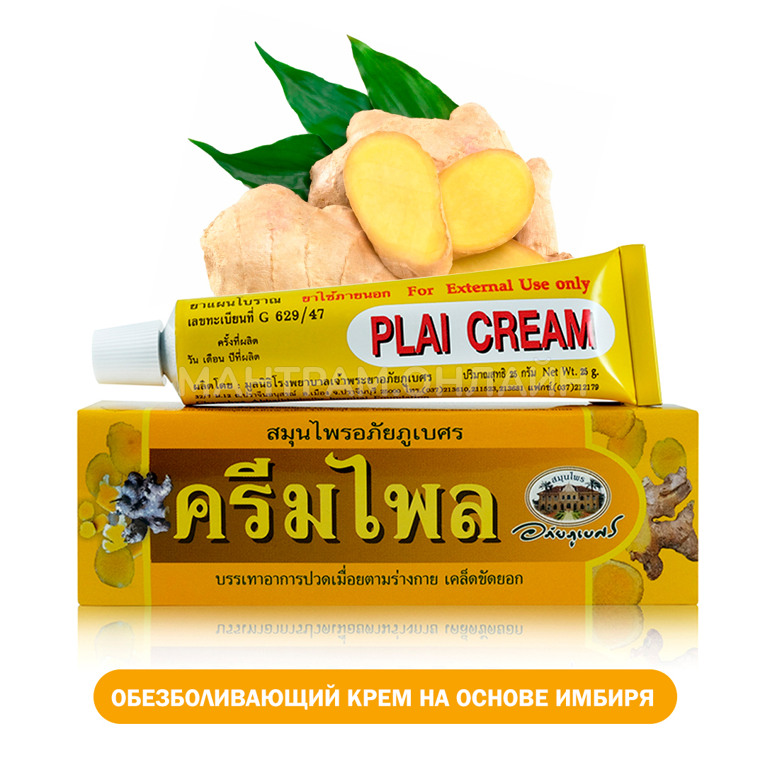Средство актуально при растяжениях, перенапряжениях и прочих мышечных болях, при болях в суставах, связках и сухожилиях, при головных болях и простудных прострелах в спине и шее. Также его с удовольствием используют спортсмены, чтобы перед тренировкой улучшить подвижность суставов и разогреть мускулы. Помимо экстракта имбиря, в составе крема также присутствует комплекс эфирных масел, которые усиливают воздействие основного активного компонента. Примечательно, что в отличие от тайских бальзамов, Plai Cream Abhaibhubejhr при нанесении на кожу совершенно не вызывает эффектов жжения и прогревания. Также нет и характерного резкого запаха - мягкий аромат трав и специй.