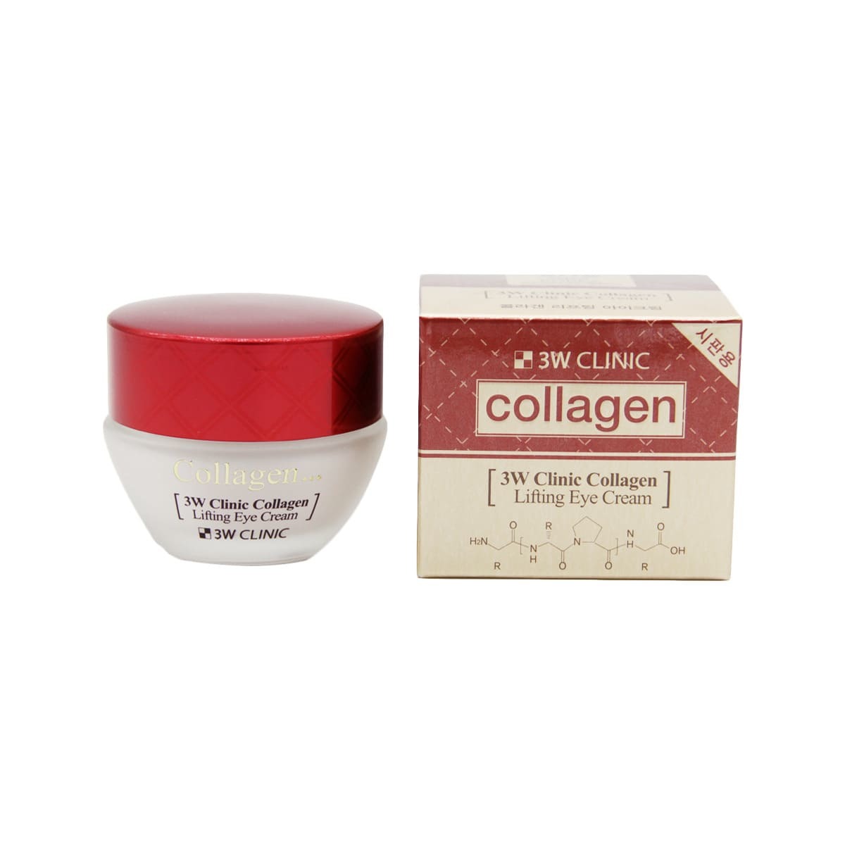 3W CLINIC Collagen Lifting Eye Cream Крем для век с коллагеном ЛИФТИНГ Крем с уникальной двухуровневой коллагеновой формулой воздействия. Восстанавливает гладкость кожи вокруг глаз, интенсивно подтягивает кожу век, активно питает и увлажняет кожу, заметно сокращает мелкие и мимические морщины, предотвращает появление морщин в области глаз. Достигается эффект лифтинга кожи. Превосходная основа под макияж для любого типа кожи.