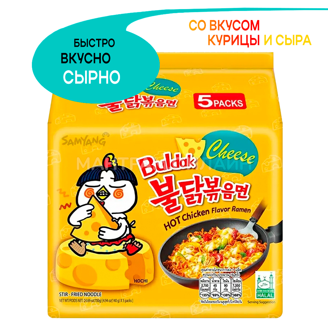 Знаменитая огненная лапша Buldak, но с добавлением сырного вкуса, который делает ее более сливочной и смягчает остроту.