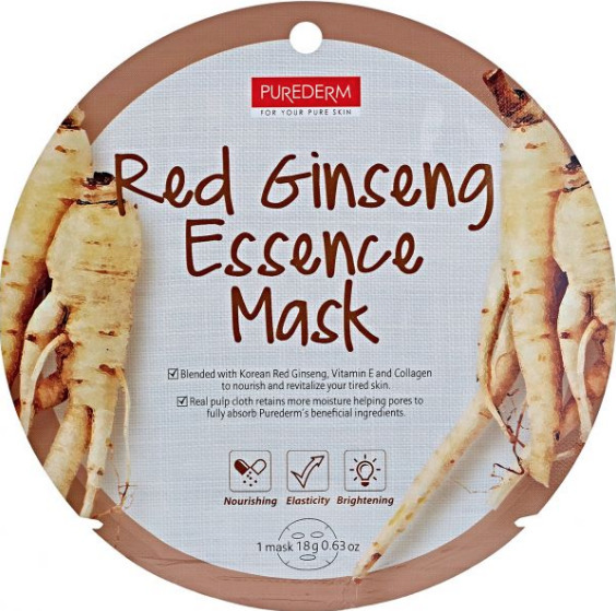 - Маска Purederm Red Ginseng Essence Mask с экстрактом женьшеня восстанавливает упругость и тонус кожи, укрепляет, сокращает и разглаживает морщины.