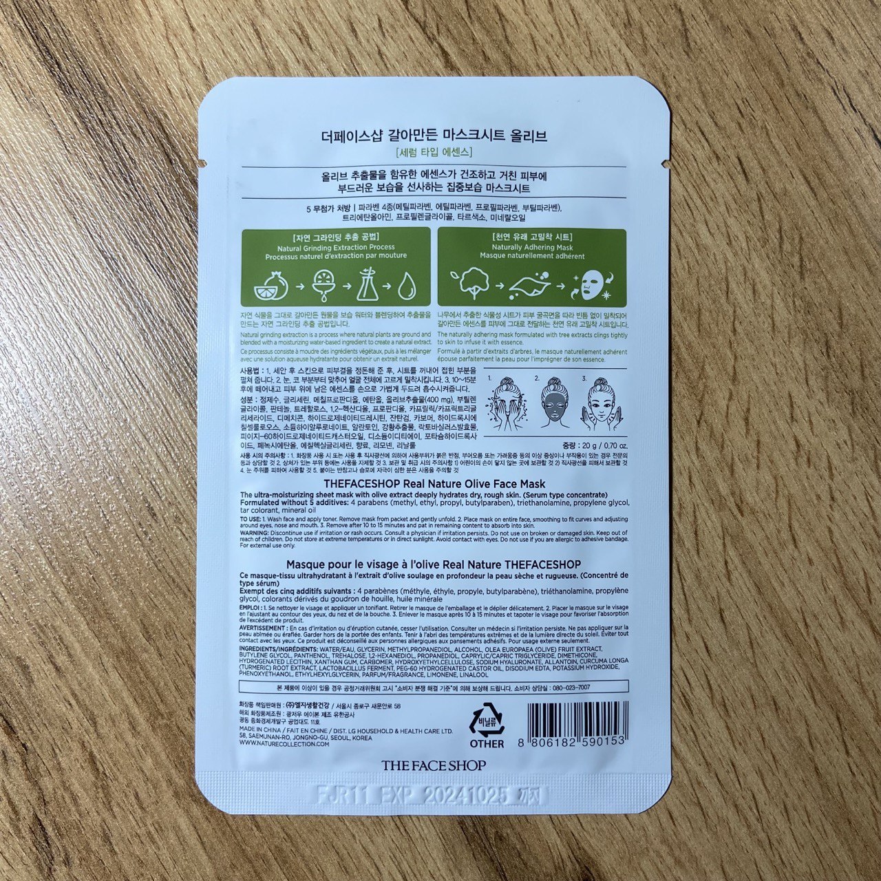 Тканевая маска с экстрактом оливы увлажняет, смягчает и питает кожу, возвращает ей нежность и ухоженный вид