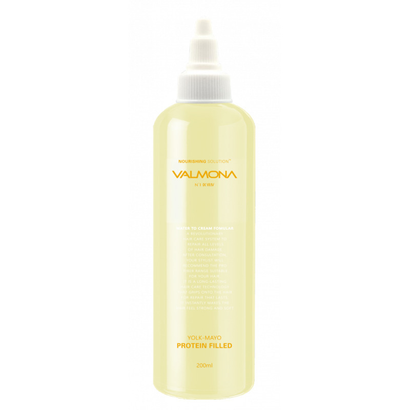 Yolk-Mayo Protein Filled Маска для волос ТМ Valmona Интенсивное питание и восстановление поврежденных, ослабленных и ломких волос. Жидкая формула действует по принципу филлера: при соединении с водой моментально трансформируется в концентрированный крем, который быстро проникает в глубокие слои кутикулы волоса, восстанавливая их изнутри. Протеиновый комплекс, шелк, кератин и коллаген эффективно заполняют поврежденные участки волос, возвращая им гладкость, эластичность и здоровый внешний вид. Экстракт яичного желтка, мед и экстракт банана насыщают волосы питательными веществами: протеинами, витаминами и микроэлементами, обеспечивают здоровый блеск, силу и эластичность волос. Не содержит сульфатов, парабенов, искусственных красителей и минерального масла.