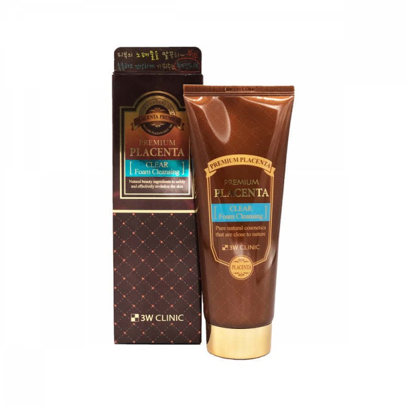 Premium Placenta clear Foam Cleansing Пенка для умывания ТМ 3W CLINIC Омолаживающая пенка эффективно устраняет с поверхности кожи и пор повседневные загрязнения, остатки косметики и себум, не пересушивая ее, выравнивает тон и отшелушивает ороговевшие клетки, ускоряя процесс регенерации. Экстракт плаценты оказывает активное укрепляющее и лифтинг действие, разглаживает микрорельеф кожи, повышает эластичность и упругость, препятствует потере объёма и появлению дряблости, осветляет пигментацию различного происхождения и предотвращает появление новых пятен. Экстракт папайи оказывает активное отшелушивающее, регенерирующее, омолаживающее, антиоксидантное и осветляющее действие.