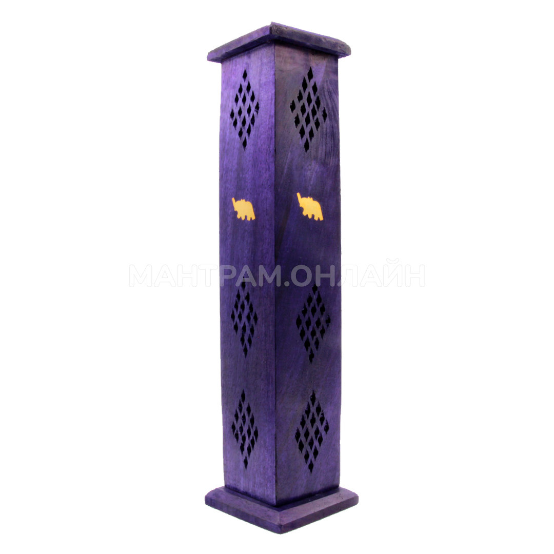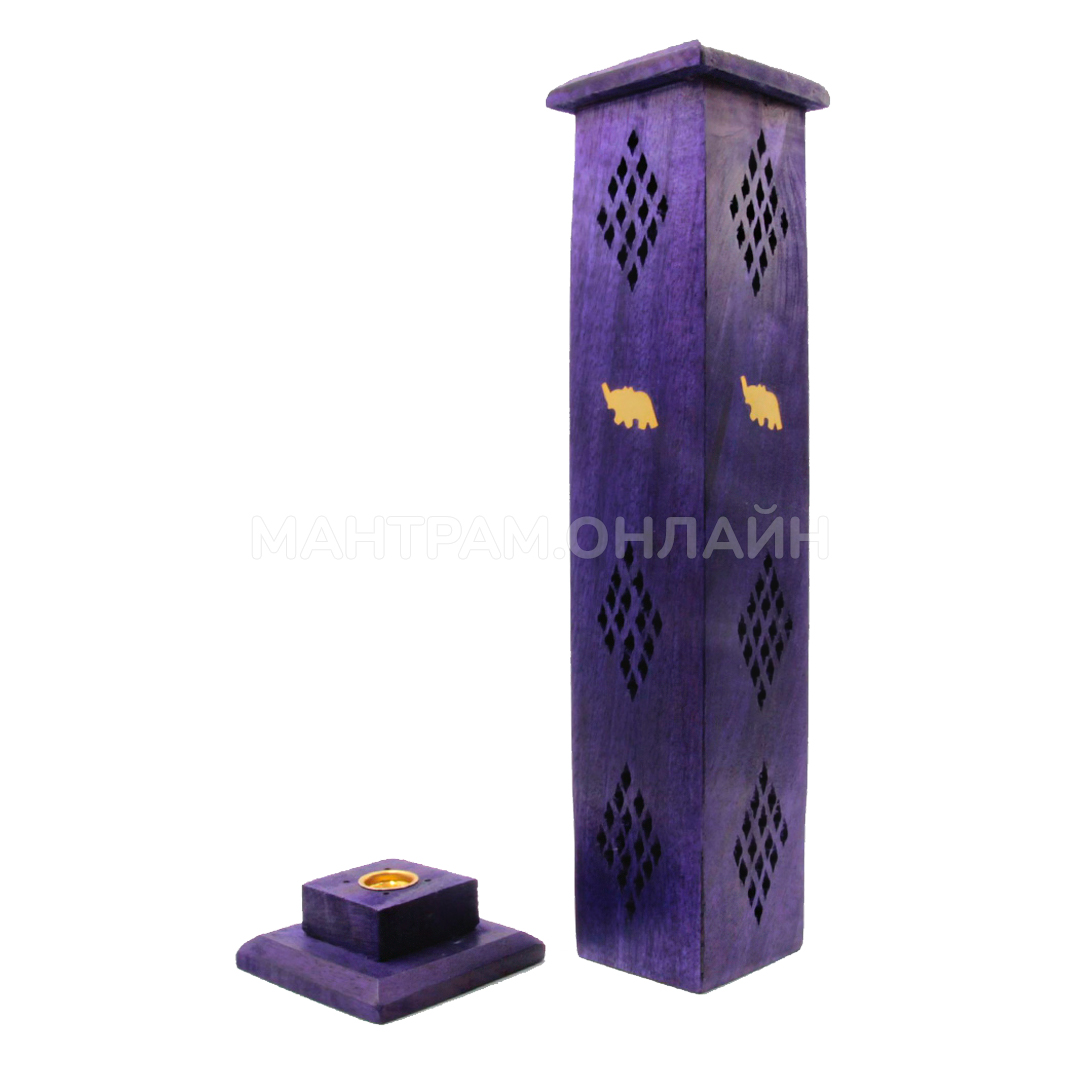 Резная деревянная подставка для благовоний Башня со слоном. Хотите ощутить у себя дома европейский комфорт и восточный колорит? Тогда необычная индийская подставка для благовоний в форме башни - это то, что Вам нужно! Она предназначена для возжигания ароматических палочек на бамбуковой основе и ароматических конусов. Аромапалочки нужно поджечь, затем потушить пламя и тлеющую палочку поставить вертикально, для этого имеются четыре отверстия – можно смешивать разные запахи. Внутри подставки можно также возжигать аромаконусы. Затем тлеющие благовония следует накрыть резной крышкой подставки. Из прорезей заструится ароматный дым, что будет выглядеть очень эффектно. С помощью подставки для благовоний можно создать в доме собственную уютную атмосферу, которая будет позитивно влиять на настроение и жизнь, надо только выбрать правильную подставку и купить подходящие благовония. Все это в огромном ассортименте имеется в нашем магазине подарков и сувениров.