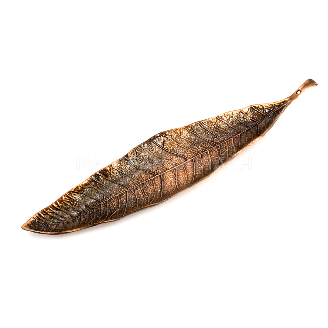 Подставка под благовония Лист, материал металл (силумин), цвет бронзовый. Тарелочка-подставка в виде листочка бронзового цвета из легкого и прочного металла, отлично подойдет для аромапалочек на бамбуковой основе и благовоний конусов. При сгорании, пепел от благовоний не рассыпается, а аккуратно падает на подставку. После догорания, ее легко вытряхнуть и вымыть.