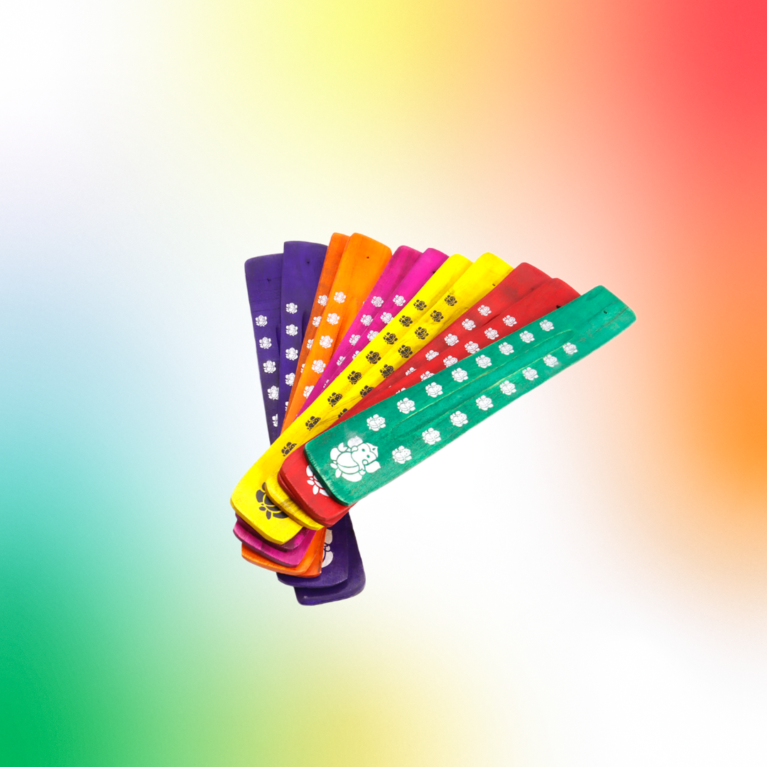 Подставка под благовония Лыжа Ганеш дерево цвет фуксия, рисунок серебристый