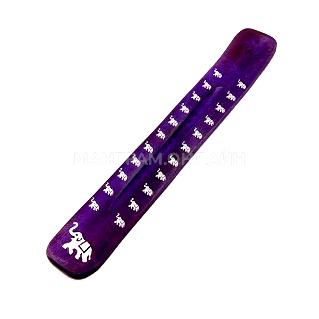 Удобная фиолетовая подставка с серебряными символами для благовоний из дерева, так называемая лыжа - одна из самых популярных среди любителей благовоний. Выполненная вручную, такая подставка очень практичная. Ароматическая палочка вставляется в углубление с одного края подставки, и в процессе горения пепел падает точно на дощечку, не пачкая поверхность Вашей мебели. Подставка выполнена настоящими индийскими мастерами из натурального материала – дерева тик, украшена традиционными индийскими символами.