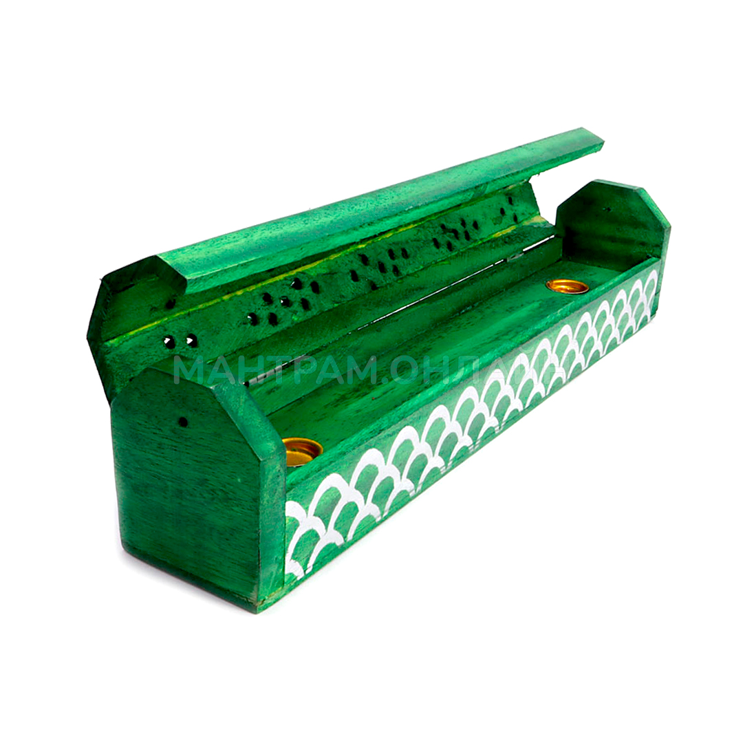 Подставка-пенал для благовоний из дерева похожа на искусно украшенную шкатулку. Процесс изготовления требует особой кропотливости, поэтому такой предмет – это шедевр ремесленного искусства. Подставка-пенал предназначена для возжигания ароматических палочек на бамбуковой основе и ароматических конусов. Аромапалочки нужно поджечь, затем потушить пламя и тлеющую палочку вставить горизонтально, для этого имеются два отверстия – можно смешать разные запахи. Внутри подставки можно также возжигать аромаконусы. Затем тлеющие благовония следует накрыть резной крышкой подставки. Из прорезей заструится ароматный дым, что будет выглядеть очень эффектно. Дерево шишам – то, что нужно для любителей всего натурального. Оно быстро пропитывается благовонным дымом и еще долго будет наполнять ваше помещение благоуханиями.