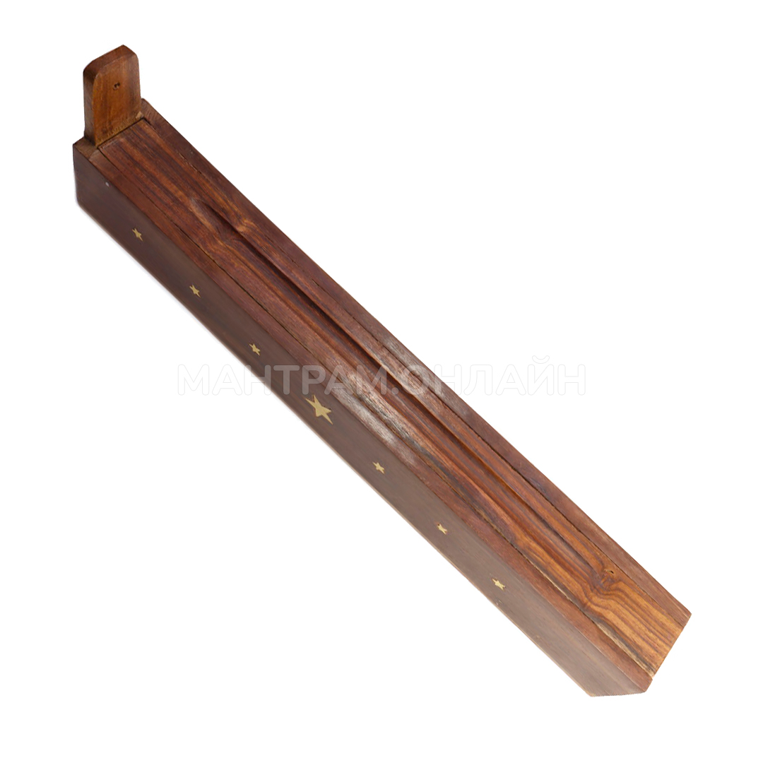 Подставка-пенал для благовоний из дерева шишам похожа на искусно украшенную шкатулку. Процесс изготовления подставки требует особого терпения и кропотливости, поэтому такой предмет – это шедевр ремесленного искусства. Подставка-пенал предназначена для возжигания ароматических палочек на бамбуковой основе и ароматических конусов. Аромапалочки нужно поджечь, затем потушить пламя и тлеющую палочку вставить горизонтально, для этого имеются два отверстия – можно смешать разные запахи. Внутри подставки можно также возжигать аромаконусы. Затем тлеющие благовония следует накрыть резной крышкой подставки. Из прорезей заструится ароматный дым, что будет выглядеть очень эффектно. Дерево шишам – то, что нужно для любителей всего натурального. Оно быстро пропитывается благовонным дымом и еще долго будет наполнять ваше помещение благоуханиями.