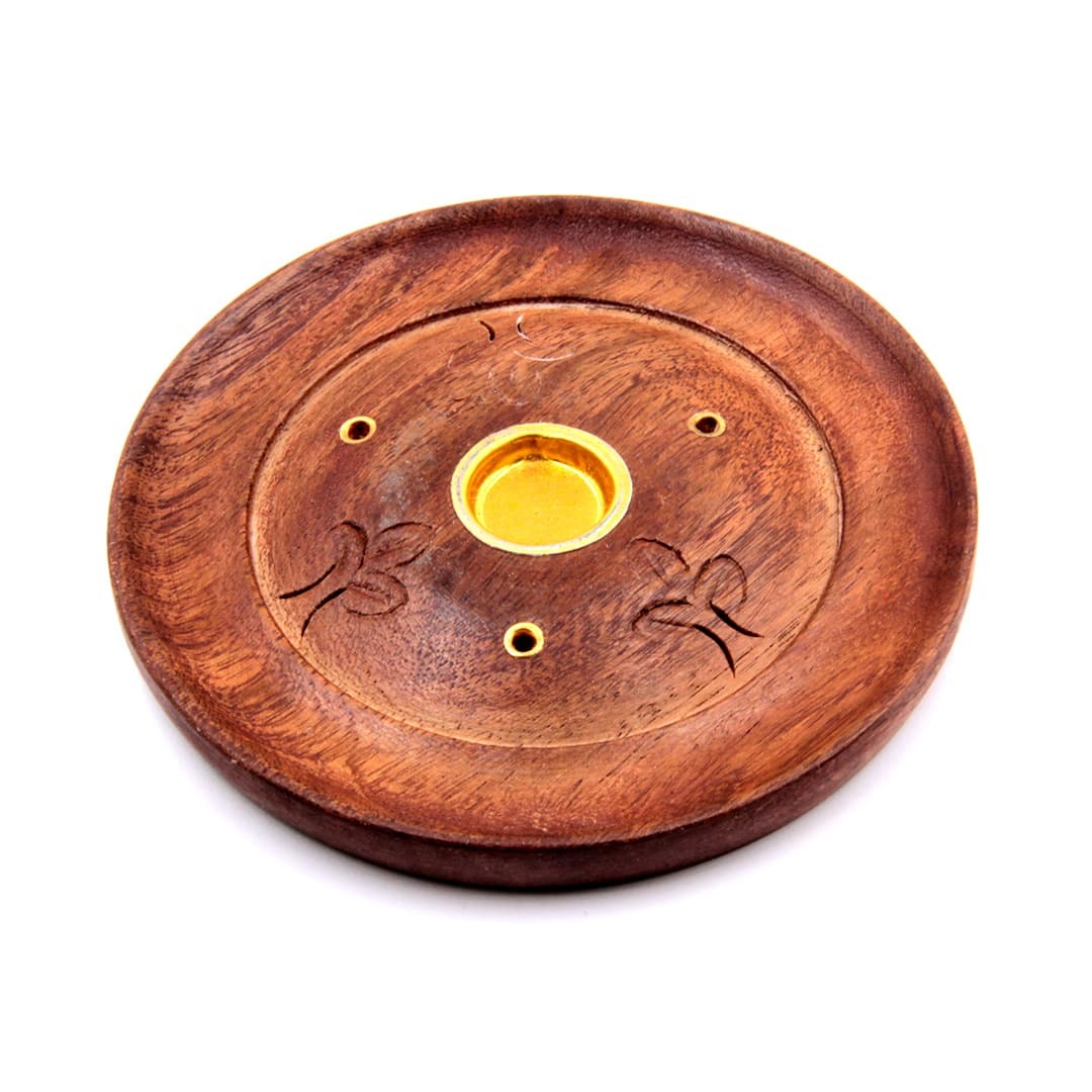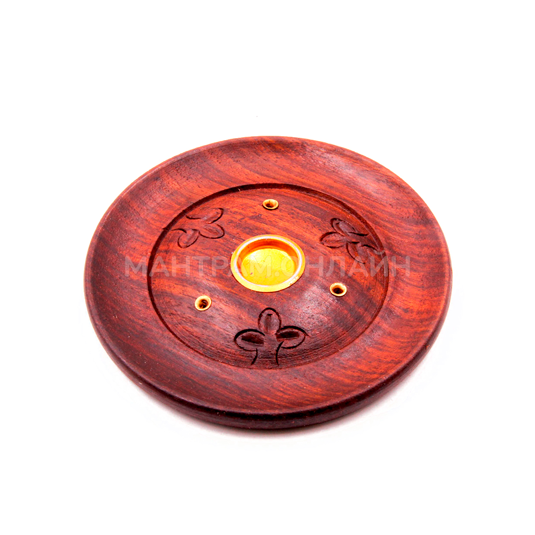 Подставка для благовоний из дерева Тарелочка. Аксессуары в индийском стиле - это модно, ярко и современно. Если вы пожелали приблизить к себе экзотику, начните с подставки для благовоний. Она прекрасно сочетается с современными стилями в интерьере, и даже с интерьерной классикой. Сделана из дерева шишам в натуральной цветовой гамме. Аромапалочки ставятся вертикально, имеется три отверстия – можно смешивать разные запахи, на тарелочке можно также возжигать аромаконусы. К тому же она экологична. Дерево шишам – то, что нужно для любителей всего натурального. Обратите внимание на миниатюрный размер, функциональность и качество исполнения этой подставки. Создать таинственную восточную атмосферу у себя дома проще простого. Правильно подобранные благовония, необычная подставка – и Индия в вашей квартире!