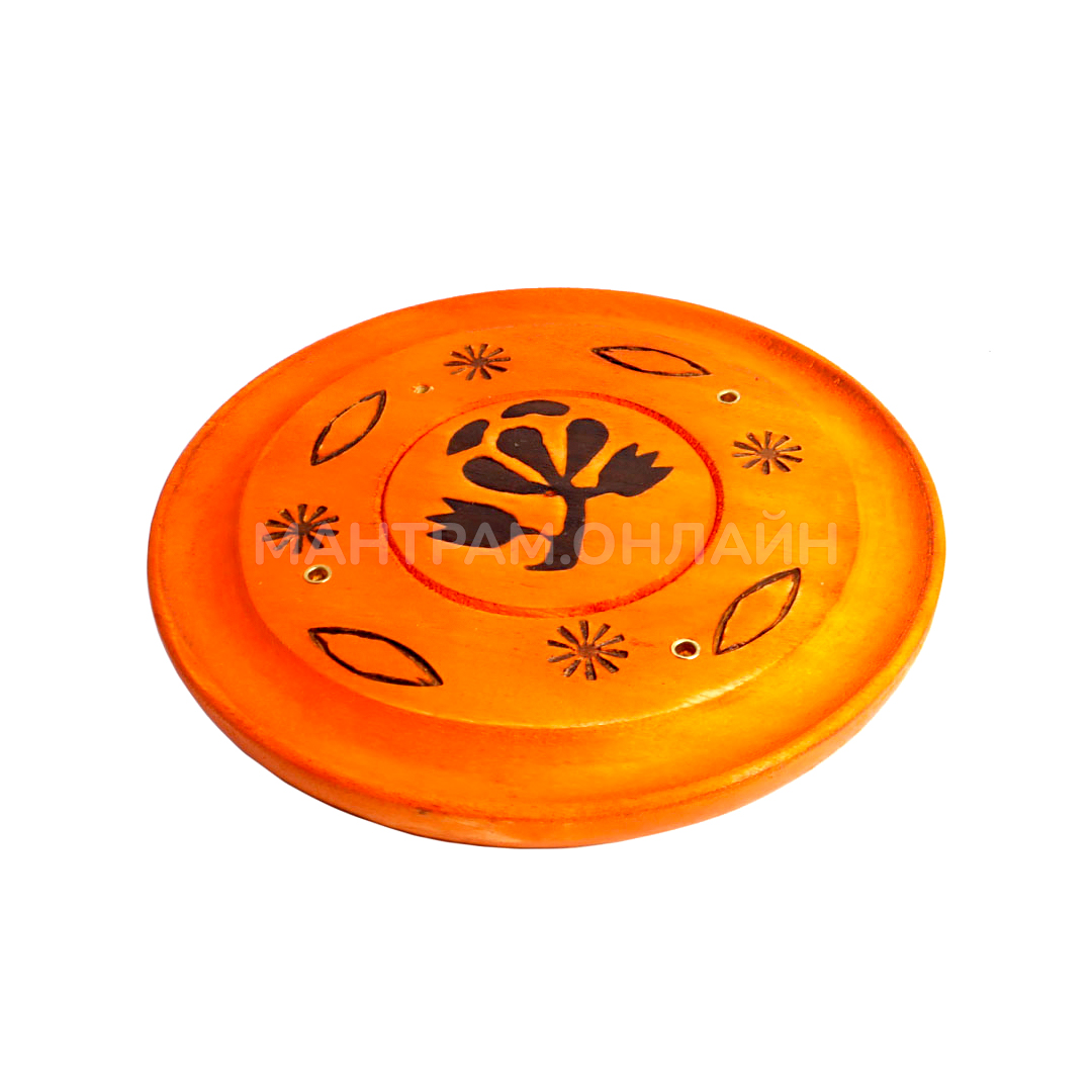 Подставка для благовоний из дерева Тарелочка круглая. Аксессуары в индийском стиле - это модно, ярко и современно. Подставка для благовоний из дерева Тарелочка сделана из дерева шишам в натуральной цветовой гамме. Аромапалочки ставятся вертикально, имеется четыре отверстия – можно смешивать разные запахи, на тарелочке можно также возжигать аромаконусы. К тому же она экологична. Дерево шишам – то, что нужно для любителей всего натурального. Обратите внимание на миниатюрный размер, функциональность и качество исполнения этой подставки. Создать таинственную восточную атмосферу у себя дома проще простого. Правильно подобранные благовония, деревянная подставка Тарелочка – и Индия в вашей квартире!