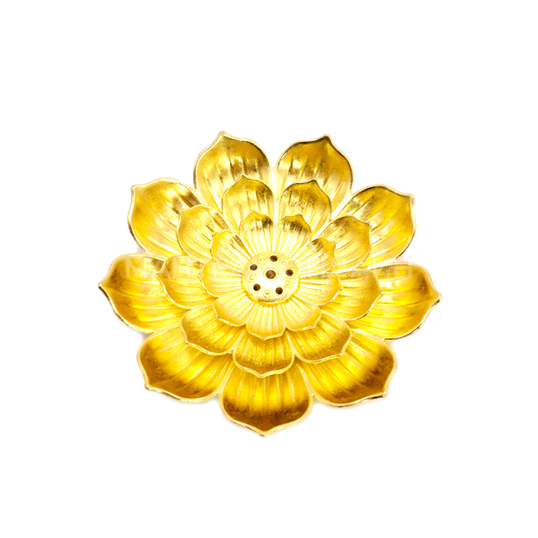 Подставка под благовония цветущий Лотос большой цвет золотистый, металл силумин 8 см