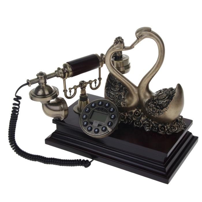 Ретро-телефон "Лебеди", дерево, металл, полистоун, 30 х 26 х 29 см