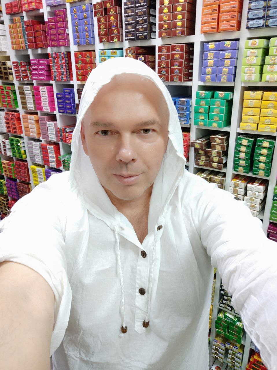 Рубашка с капюшоном на пуговицах с прорезью внизу спереди цвет белый