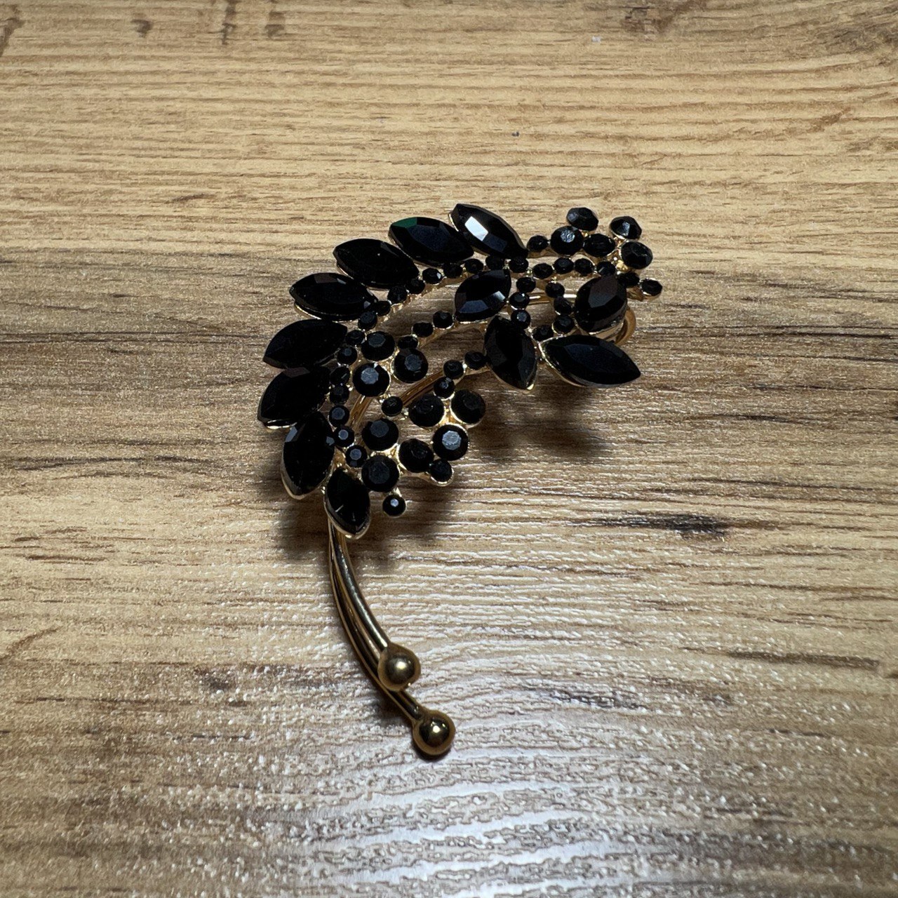 Серьга-кафф 12 листов кристалл черный стразы черные металл золотистый