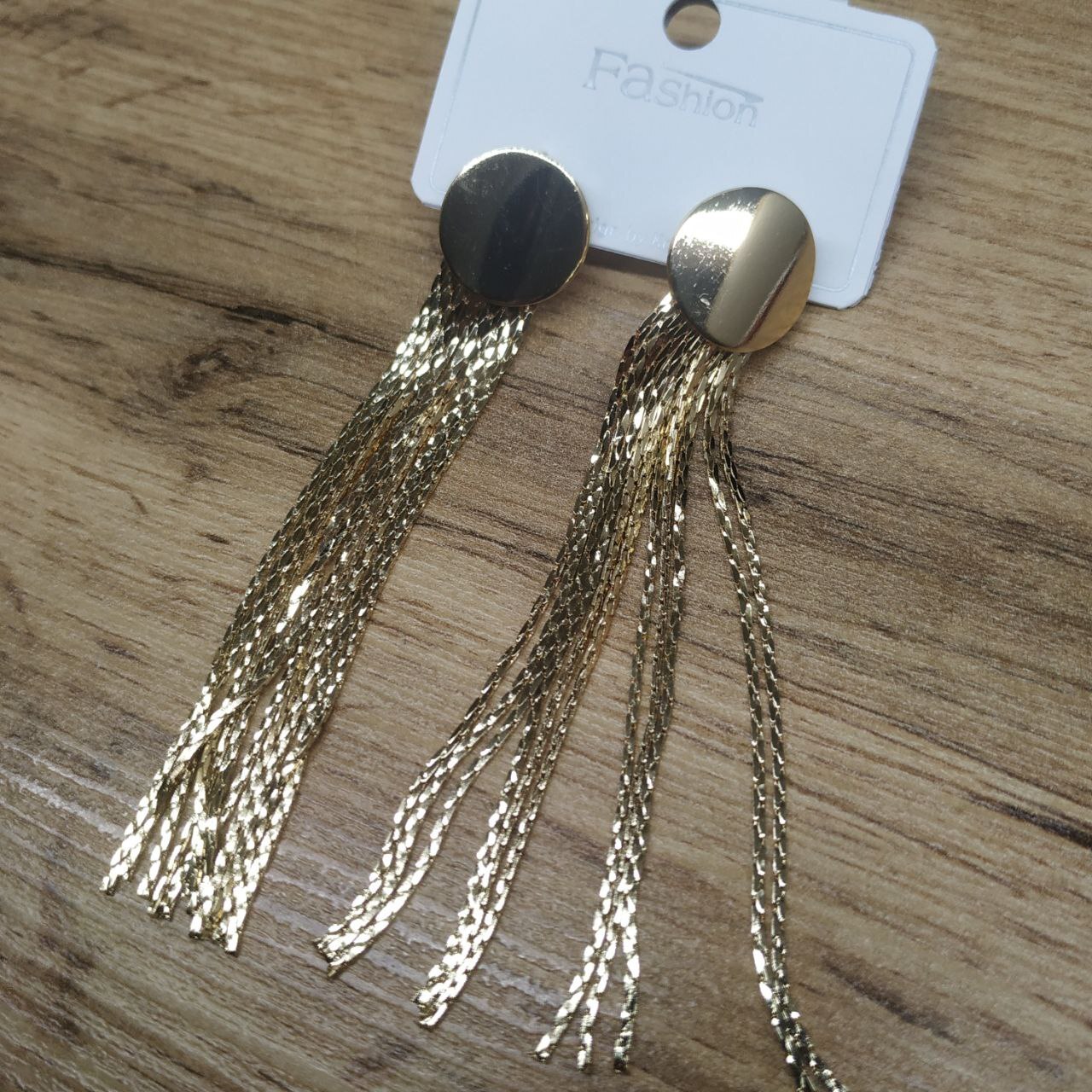 Серьги англ.заст. Bogema пластина круг цепочки жгутики металл золотистый желтый