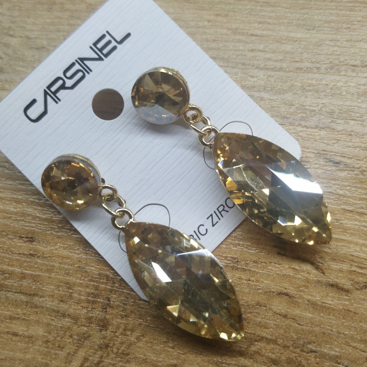 Серьги-гвоздики Cubic Zirconia подвеска овал цвет золотистый металл золотистый