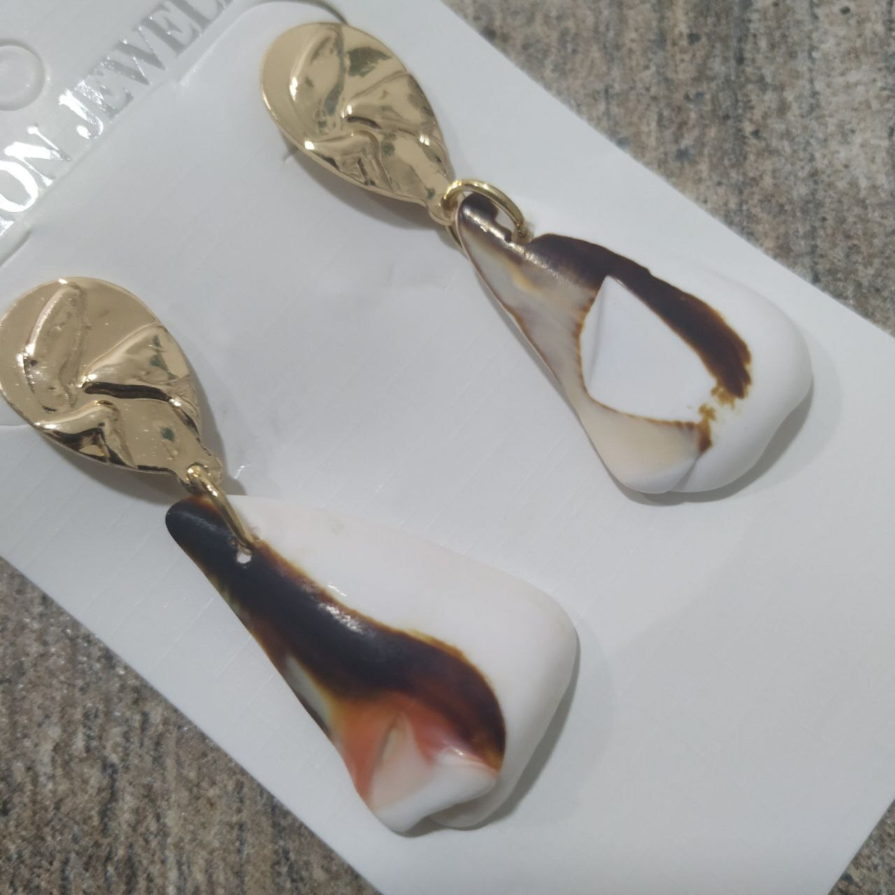 Серьги-гвоздики Ракушка срез капля перевернутая металл золотистый