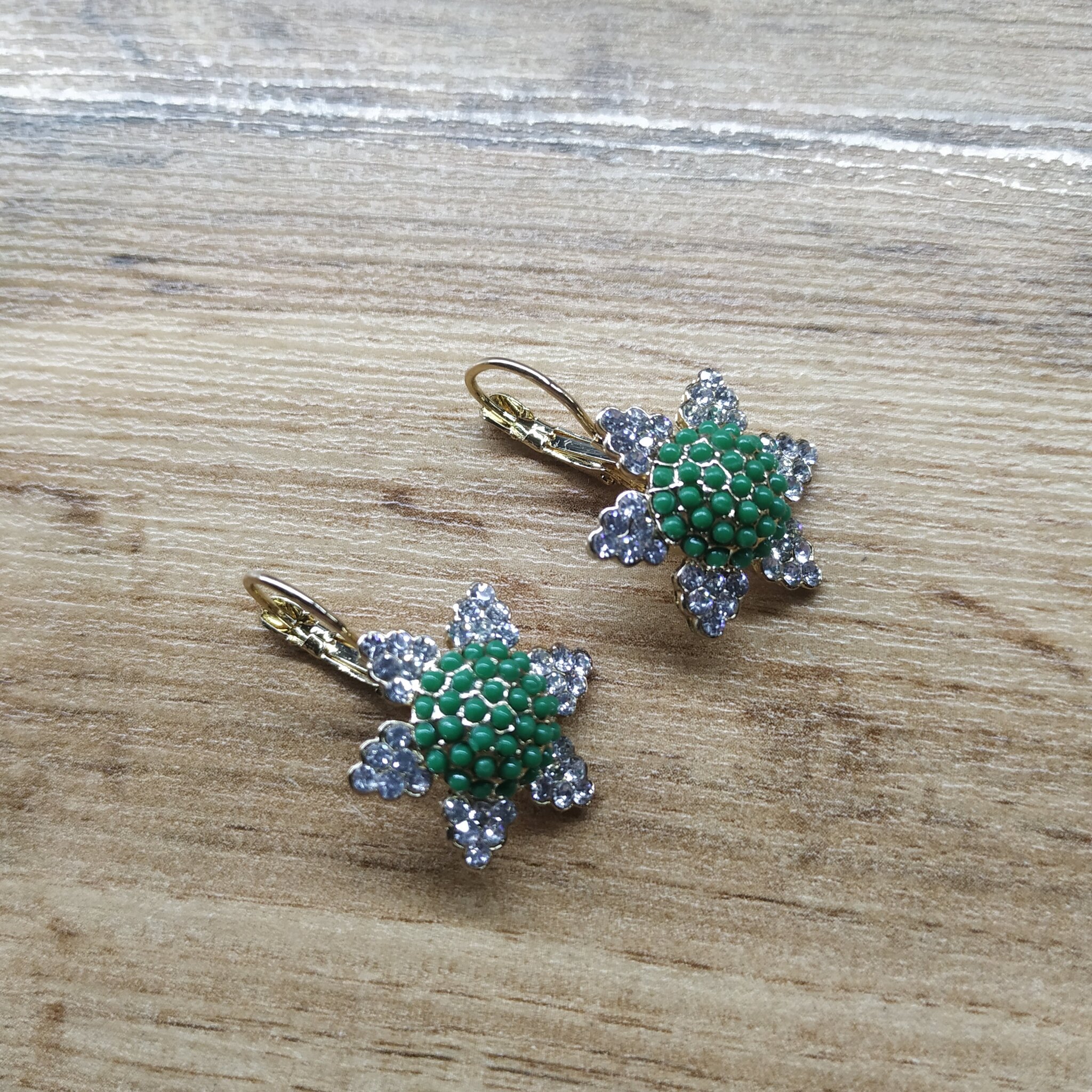 Серьги на франц.заст. Солнышко цвет зеленый стразы металл золотистый