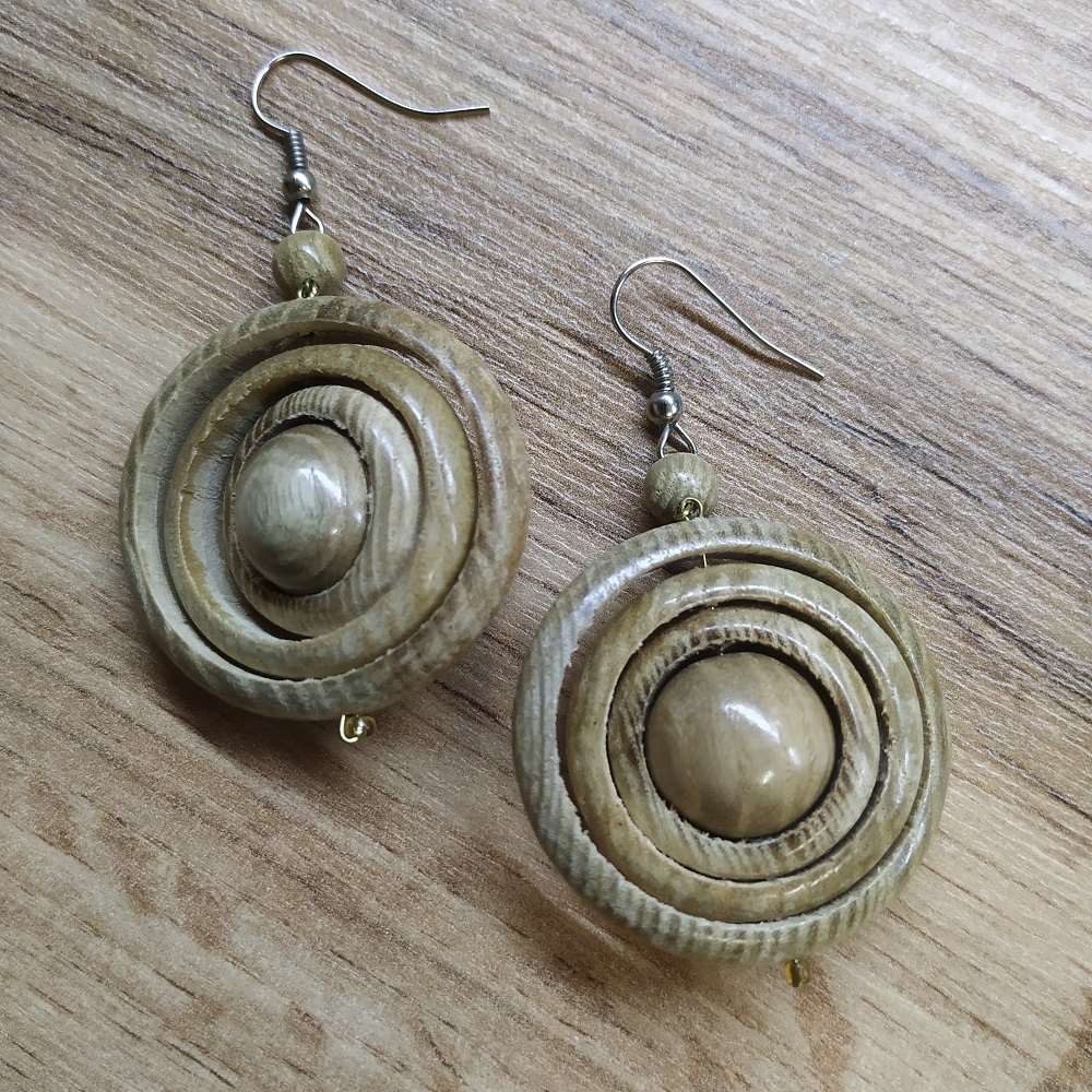 Серьги Рошен цвет бежево-коричневый дерево 35x45 мм