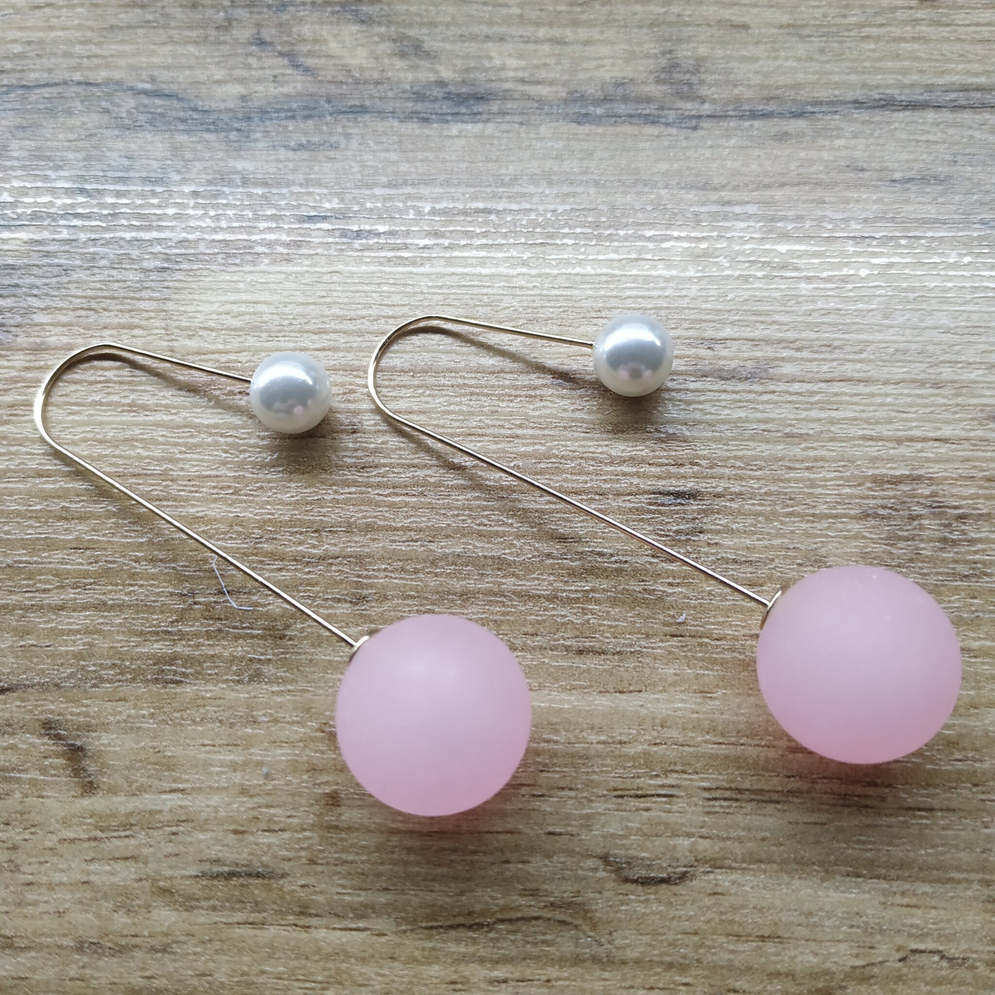 Серьги-шпильки Style Dior long бусинка цвет розовый матовый металл золотистый