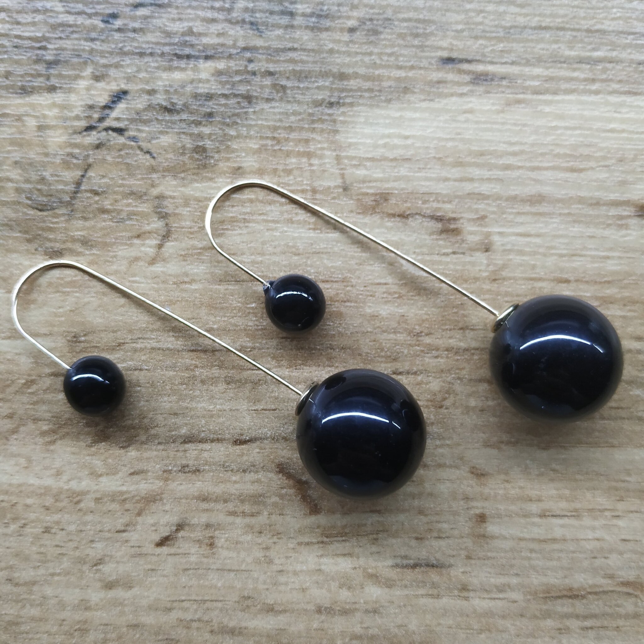 Серьги-шпильки Style Dior long цвет черный матовый металл золотистый