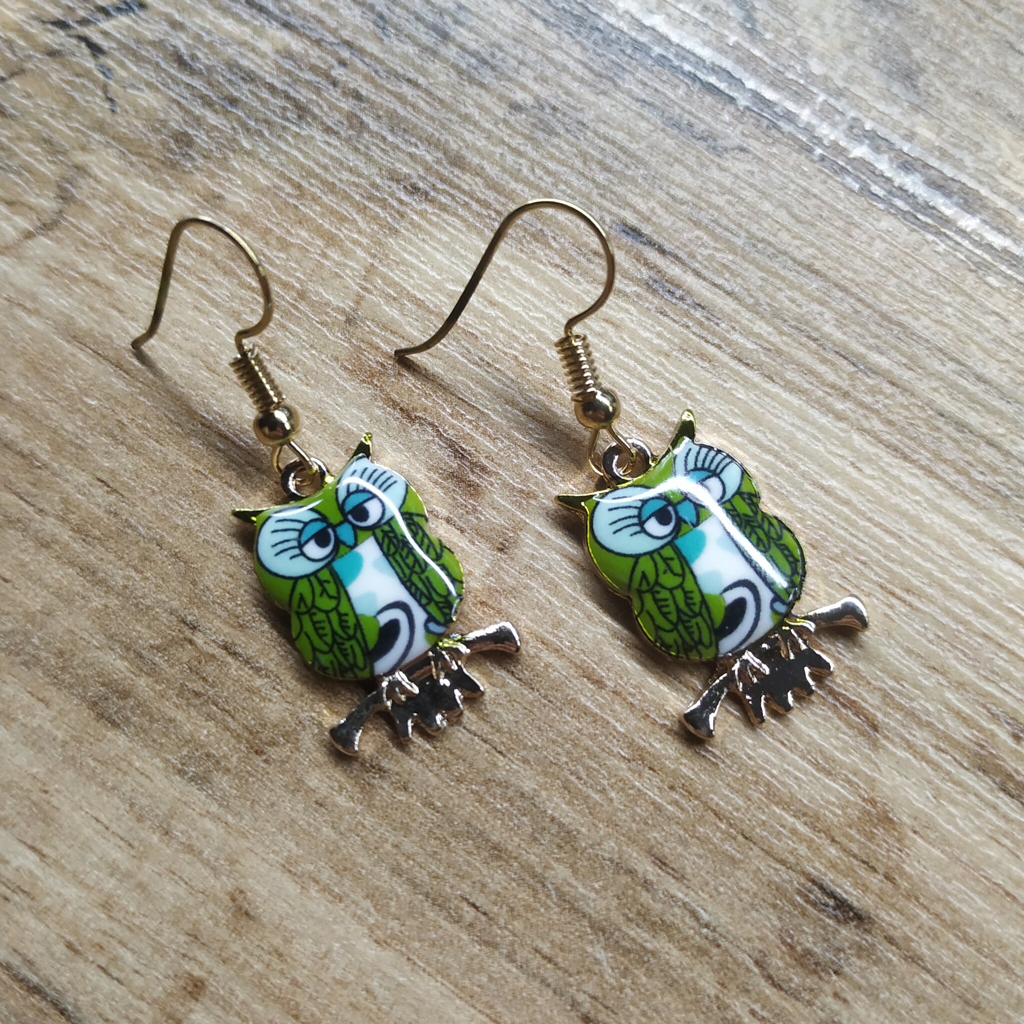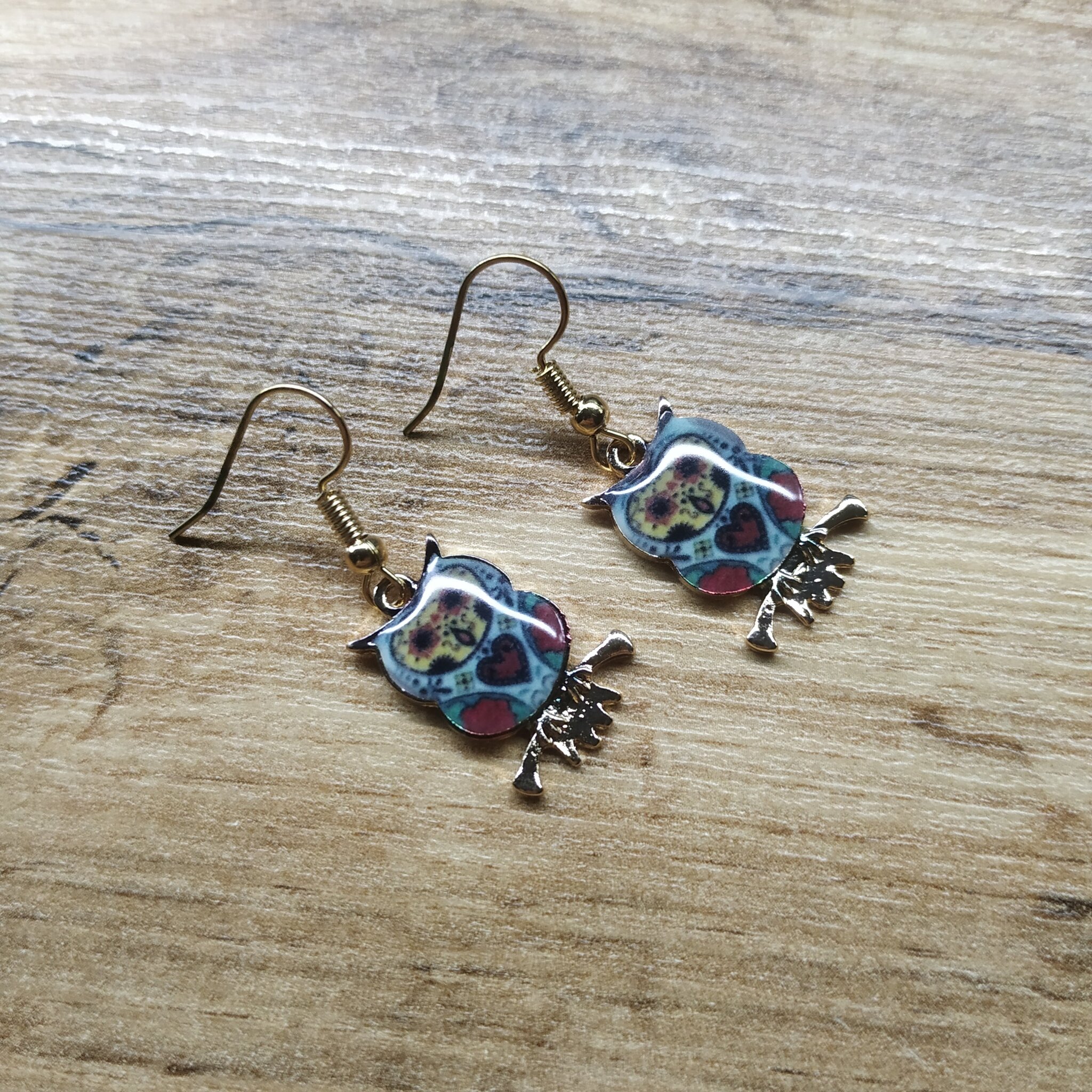 Серьги Сова на ветке цвет микс эмаль цветная металл золотистый