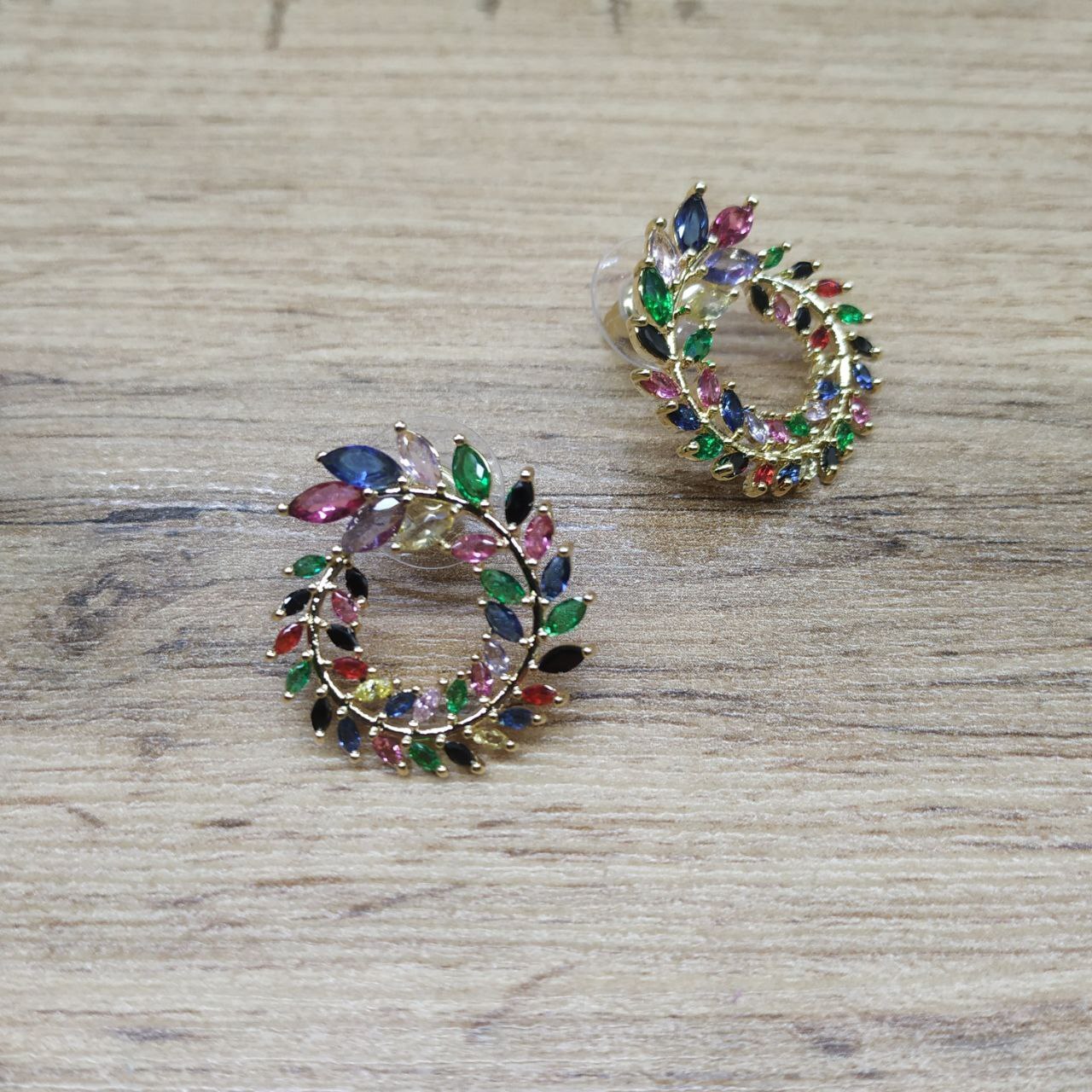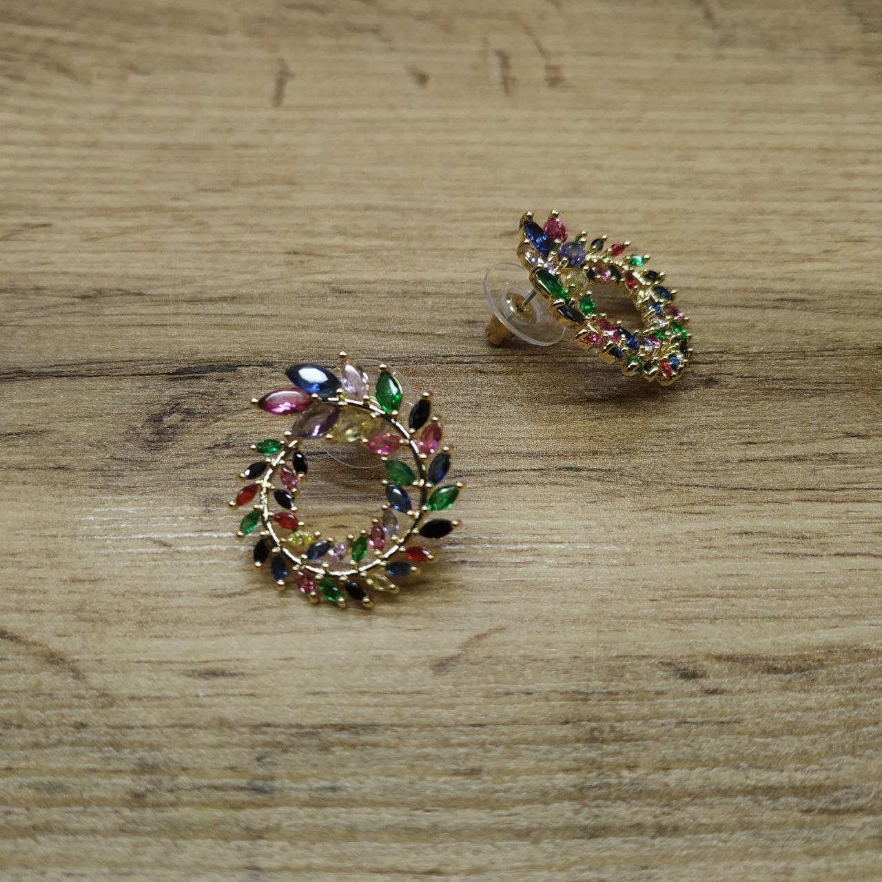 Серьги Zirconium Цветочный венок цвет ассорти металл золотистый